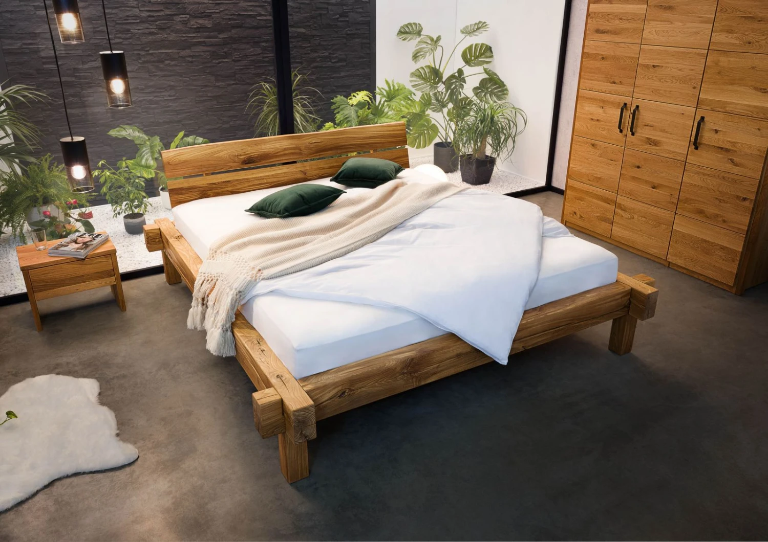 del prodotto JANGALI #712 Letto matrimoniale a travi in legno di quercia selvatica – oliato / natur 180×200