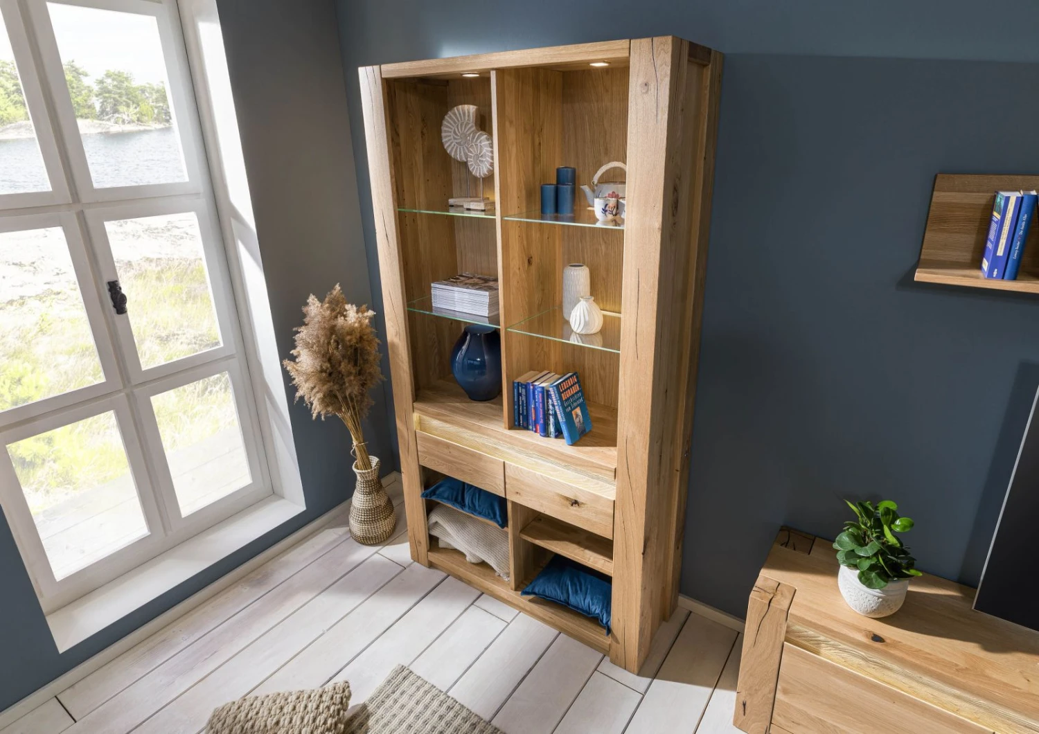del prodotto KENT #229 Scaffale in legno di quercia selvatica – oliato / bianco 113x40x205