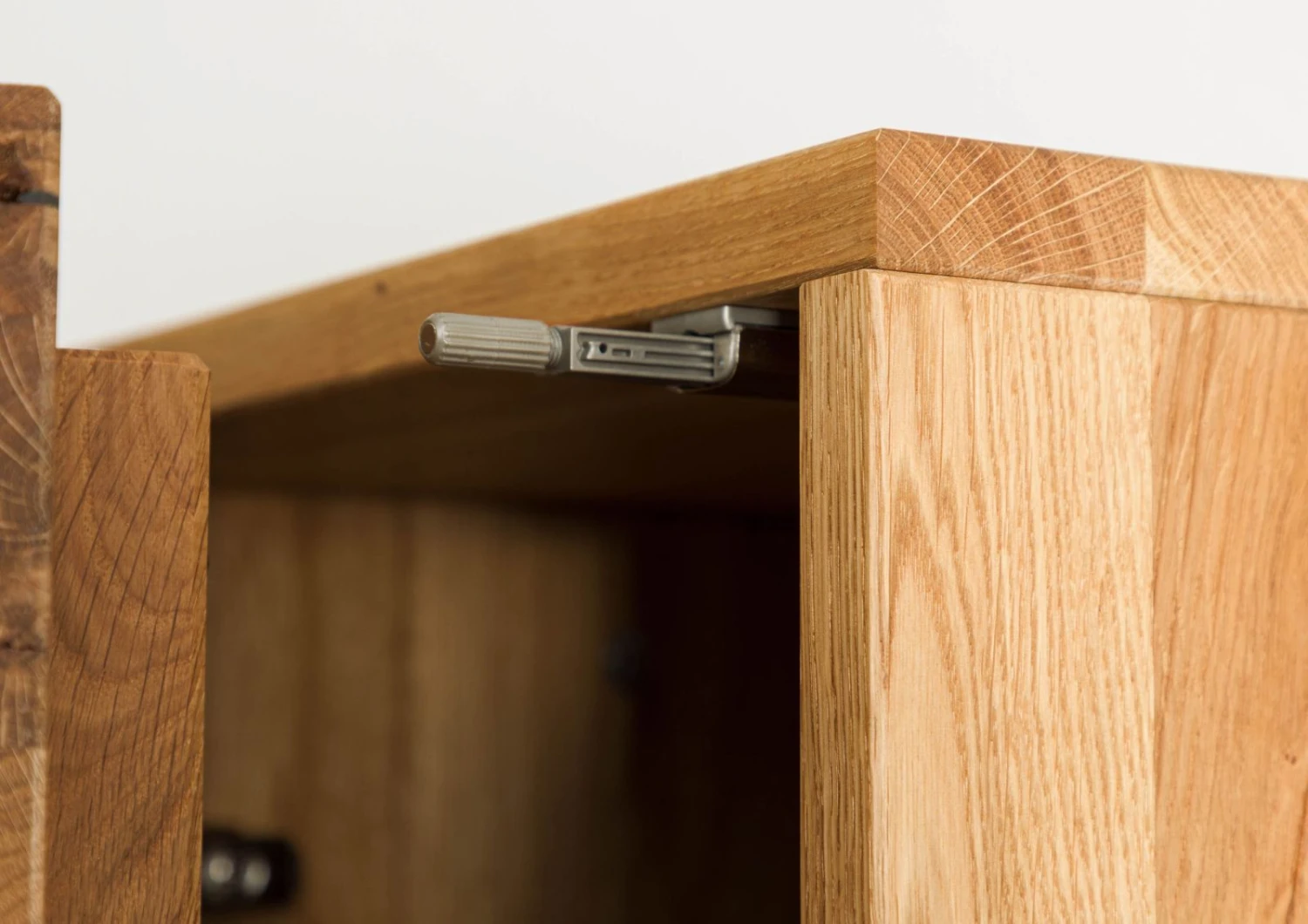 Questo pensile è un’autentica opera d’arte in legno: grazie al suo design, viene sottolineata la caratteristica elegante del legno di rovere. L’anta e la struttura sono entrambe realizzate in lamelle massicce, che combinano le singole fessure e le nervature per creare una composizione unica.