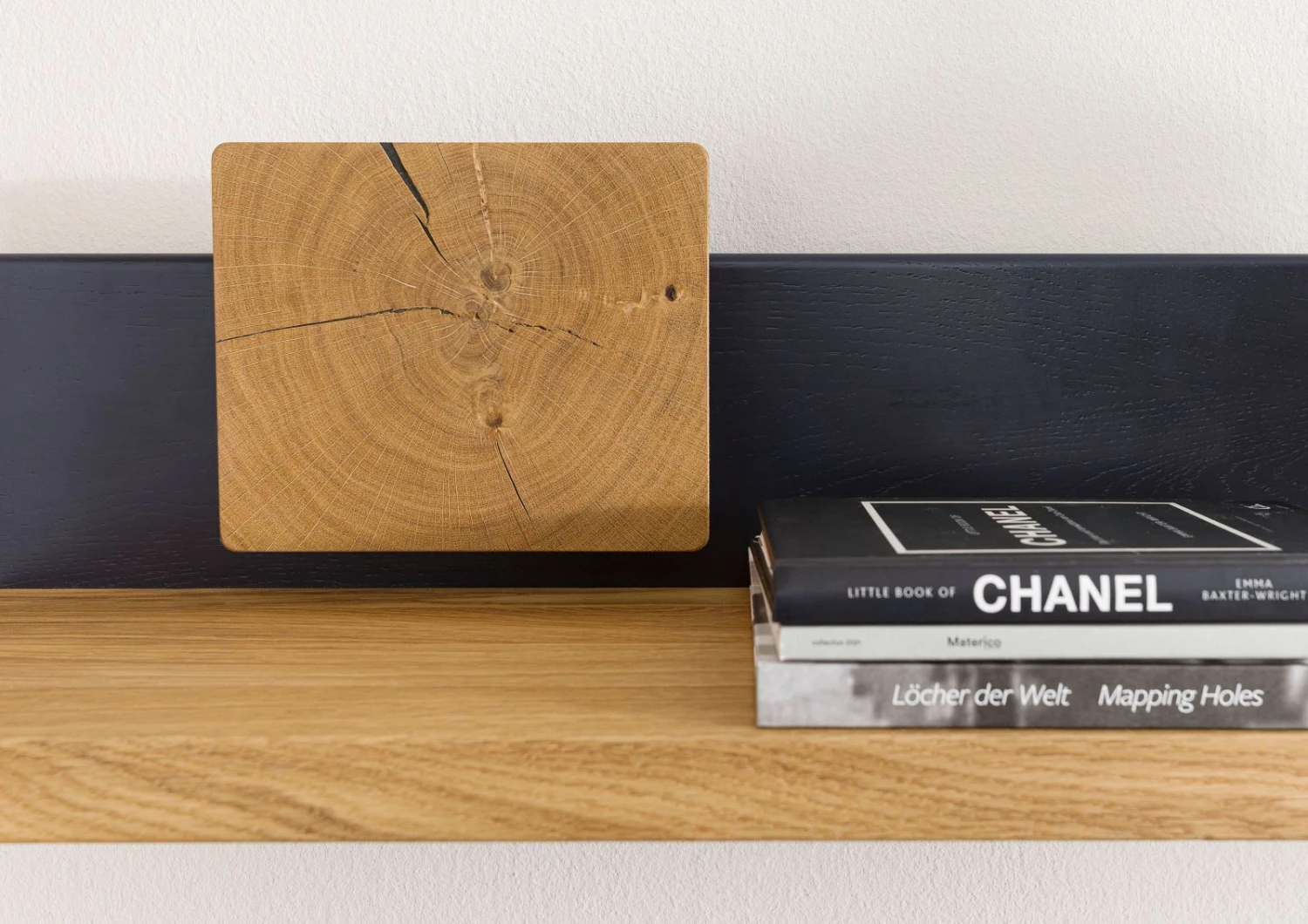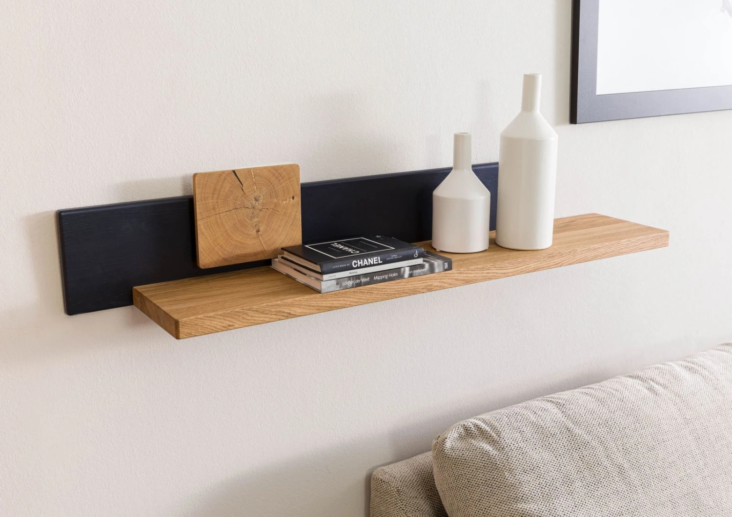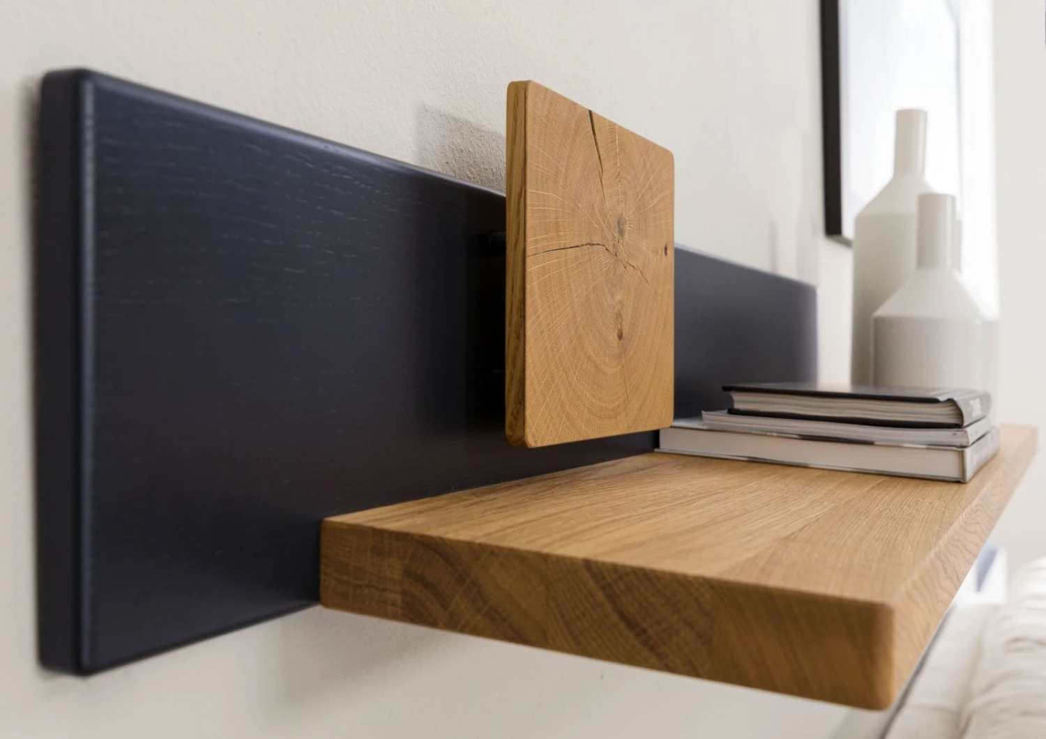 Questa mensola combina la quercia selvatica con il design contemporaneo, creando una piccola opera d’arte. Oltre al pratico ripiano, sul quale è possibile mettere in bella mostra piante o soprammobili decorativi, la mensola cattura lo sguardo con eleganza grazie al gioco di forme geometriche e al fascino naturale del legno massello. Protagonista principale è il pannello posteriore laccato nell’elegante colore nero, che lascia intravedere le venature uniche del legno massello di quercia.