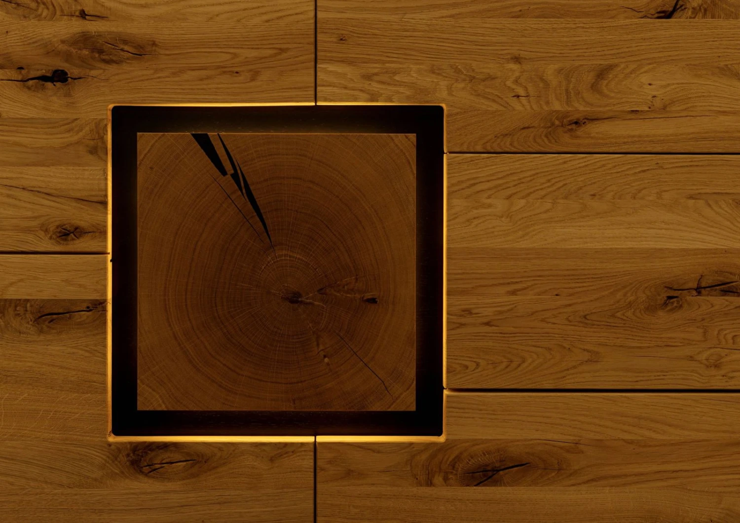 La collezione KITZBÜHEL esprime un concetto di eccezionalità che accosta il fascino della natura a un’eleganza ricercata. Questa credenza in legno massello si inserisce perfettamente in questa visione. La facciata del mobile è ornata da un grande elemento in legno a taglio trasversale che appare come un prezioso quadro astratto. La cornice in rovere selvatico laccato nero che lo delimita ne valorizza l’effetto.