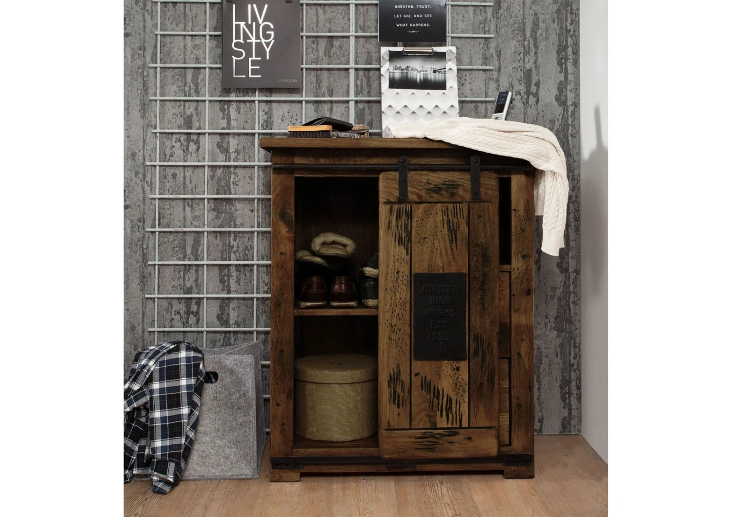 Spazio e capienza in stile industriale: il comò in legno massello