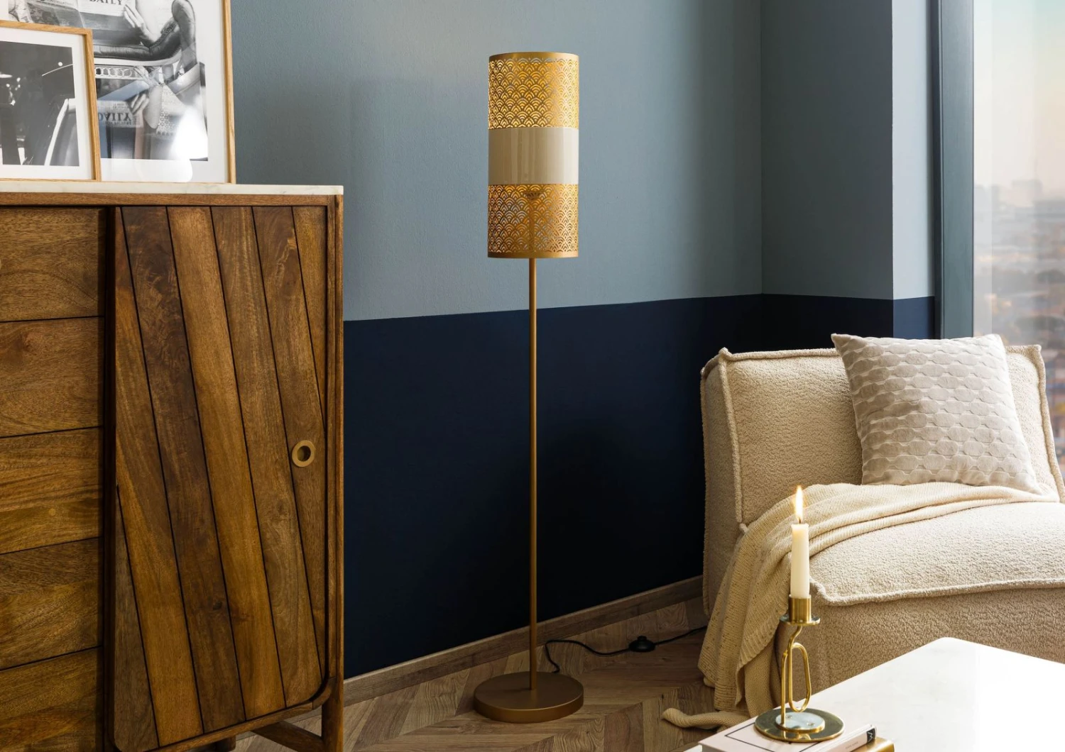 Einfach bezaubernd: Moderne Stehlampe in Creme-Weiß und Gold setzt Akzente