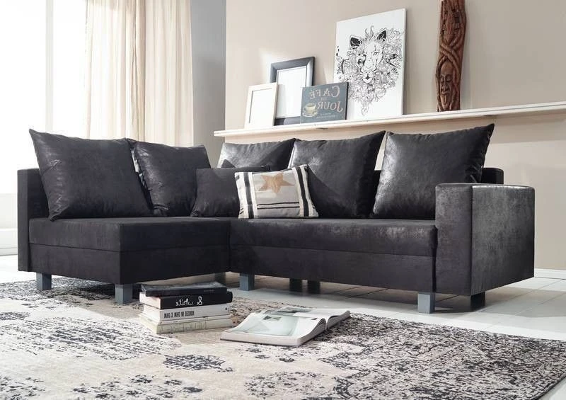 – Divano grigio di alta qualità con bracciolo in 100% poliestere con look vintage, inclusi cuscini abbinati