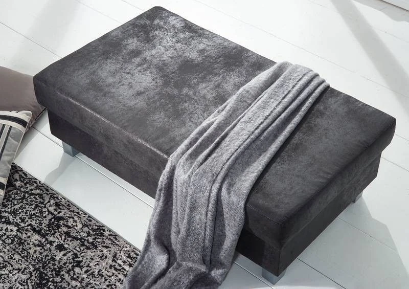 Se vi piace l’aspetto della pelle ma volete evitare i prodotti di origine animale, allora il divano angolare MAIA in grigio con poggiapiedi abbinato è la soluzione giusta per voi. Questo meraviglioso set presenta un look che ricorda la pelle vera, ma è realizzato in solo poliestere. Questo materiale è particolarmente resistente e vegano: un motivo in più per amare questa oasi di comfort! Infatti, oltre all’aspetto antico che riguarda l’intero divano, anche la comodità non passa in secondo piano. La comoda imbottitura rende le lunghe serate davanti alla TV un piacere anche per la schiena. I generosi cuscini dello schienale fanno il resto, rendendo questo divano comodissimo.