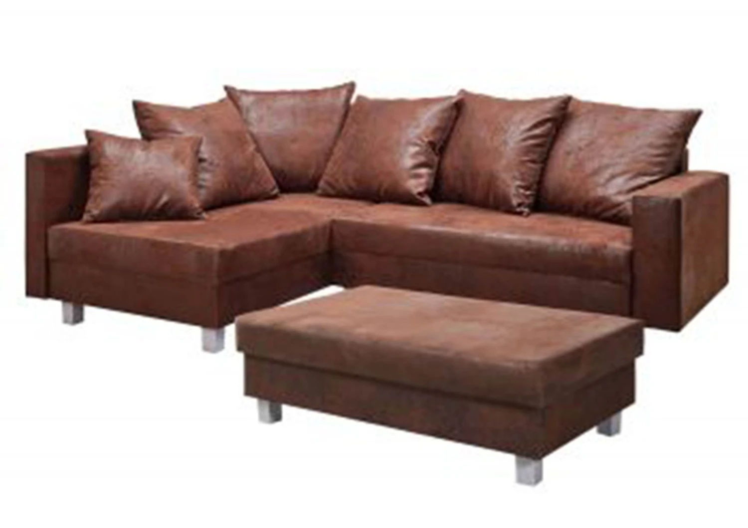 Aggiungete design e comfort alla vostra casa con questo meraviglioso divano angolare MAIA con poggiapiedi e cuscini abbinati! Questo bellissimo divano dall’aspetto vintage misura 230×160 cm ed è alto 65 cm, o 85 cm con la testiera. Godetevi ore di relax con tutta la famiglia su questo comodo sofà. Il robusto rivestimento in poliestere al 100% è non solo durevole ma anche vegano, per resistere anche a un uso intensivo. L’imbottitura in schiuma sagomata di alta qualità e la struttura in legno assicurano un comfort di seduta e una durata di alto livello, rendendo questo divano un must per il vostro salotto! I piedini in plastica grigio chiaro completano il design di successo.