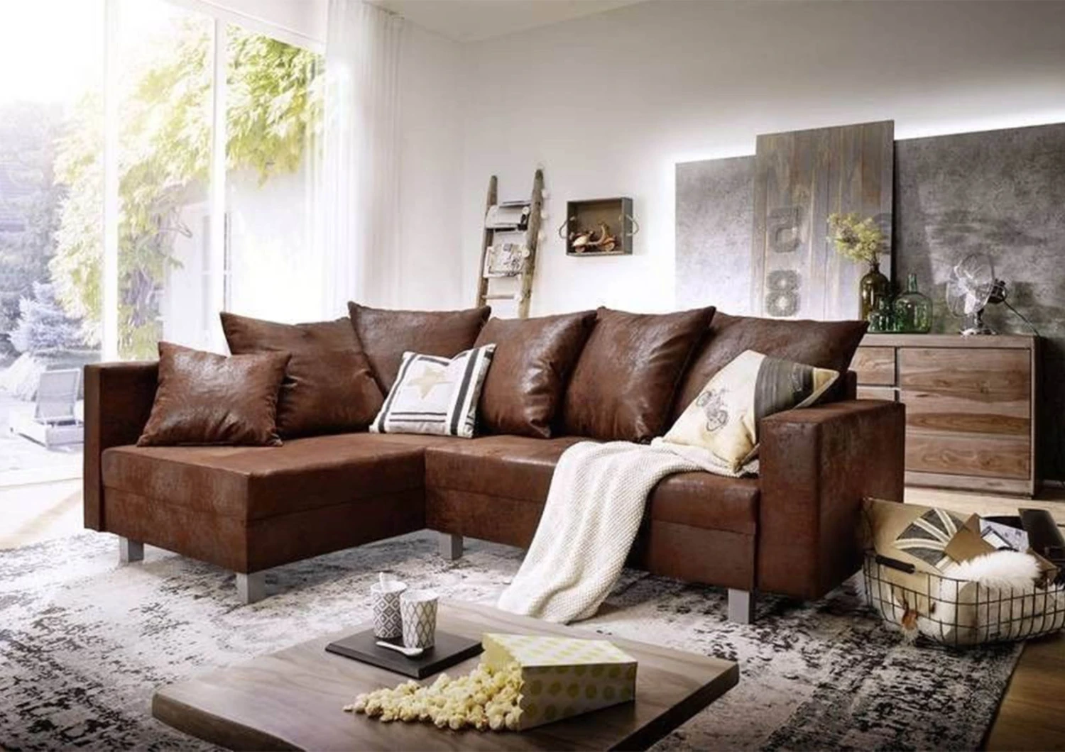 del prodotto MAIA Divano angolare – stoffa / marrone scuro – stile Vintage 230x160x85