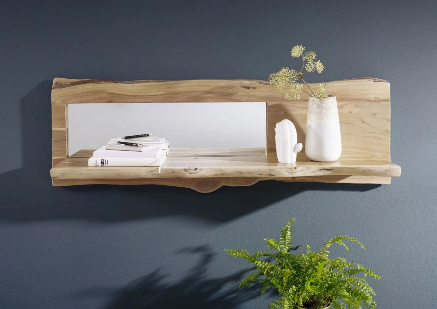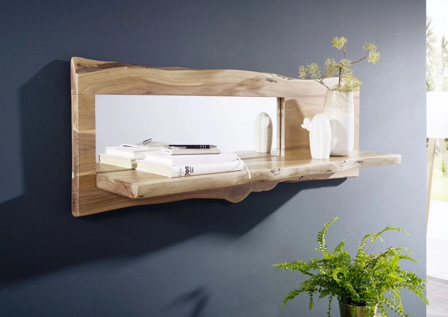 - Realizzata in legno di acacia, la mensola presenta bordi a tronco d’albero
