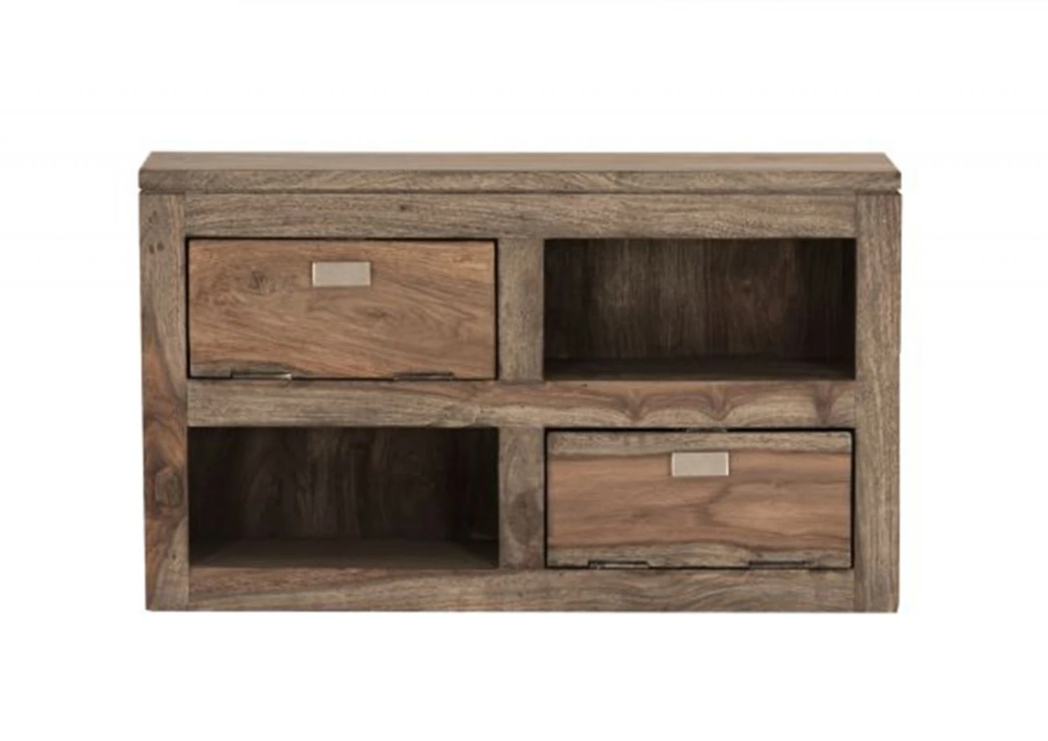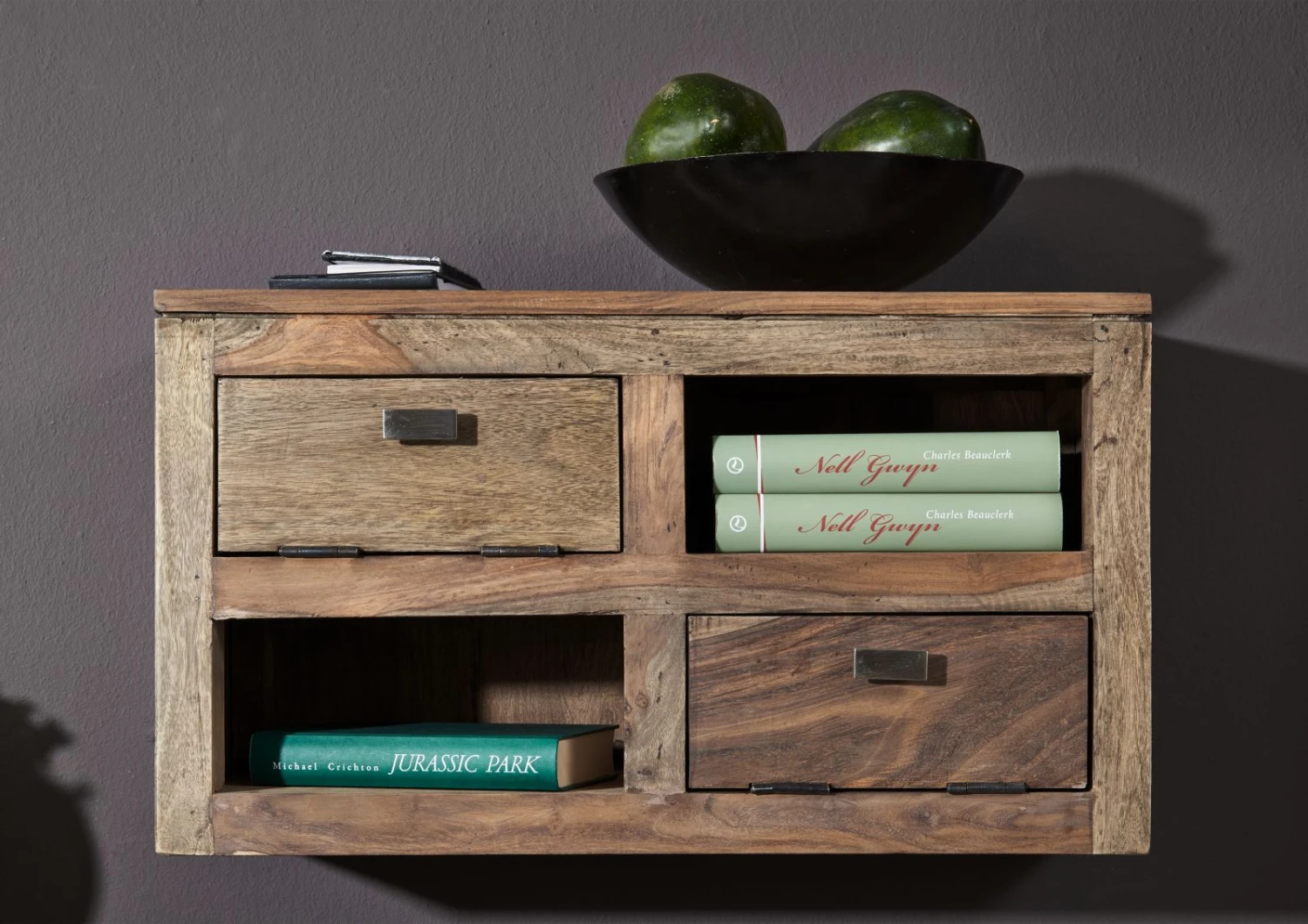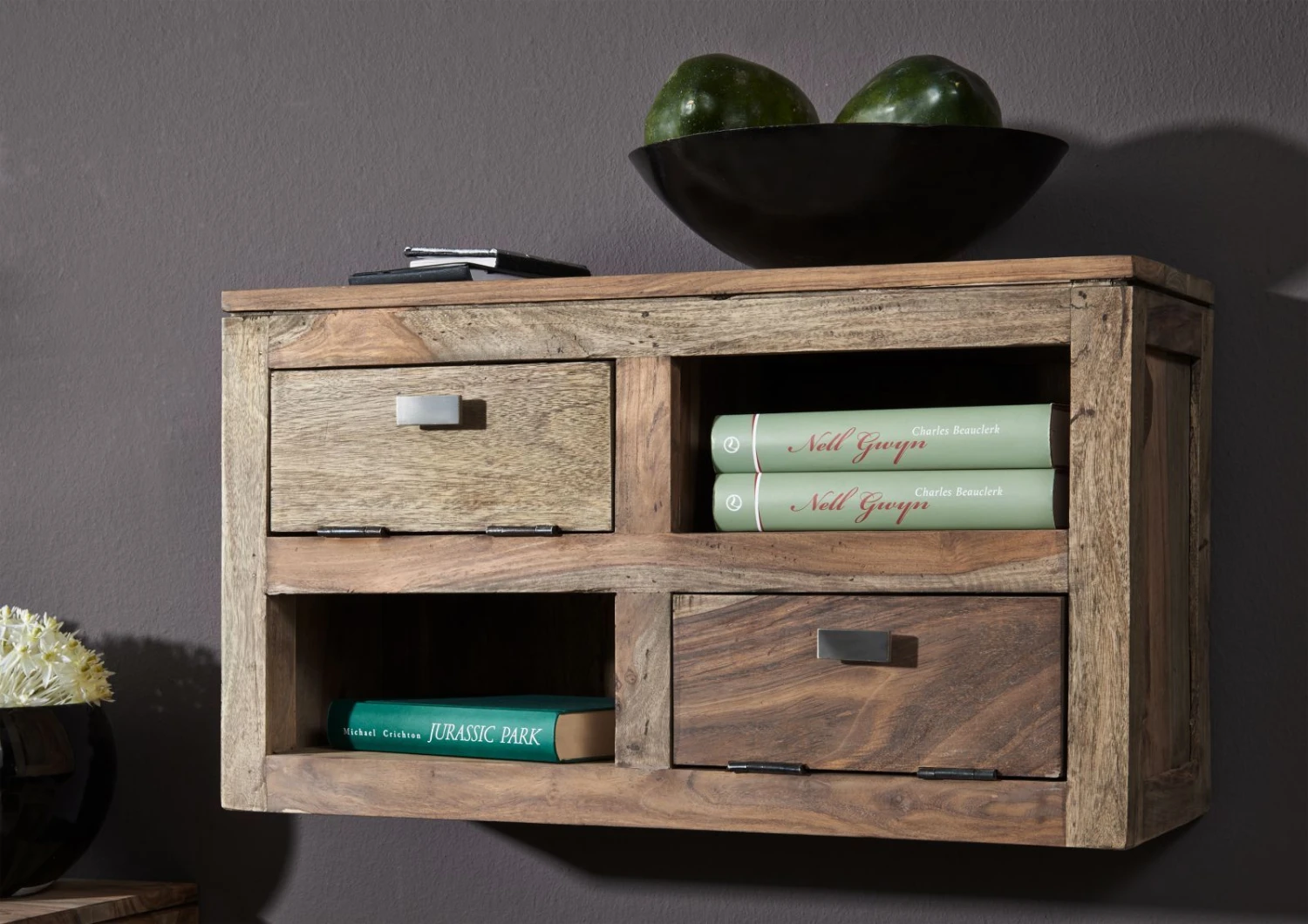 Questa piccola mensola sarà il supporto perfetto per impreziosire i tuoi oggetti decorativi preferiti, i due cassetti sono utili per archiviare oggetti lontani dalla polvere. Atipico e raffinato, il suo colore grigio porterà un tocco di originalità ed eleganza al tuo arredamento. L’olio protettivo applicato sulla superficie di questa mensola permetterà di rivelare la naturale bellezza del grano di questo legno nobile. Realizzato in legno di sheesham massiccio, la mensola valorizzerà anche la tua decorazione d’interni. Il disegno naturale del legno di sheesham rende questa mensola bello è senza tempo.