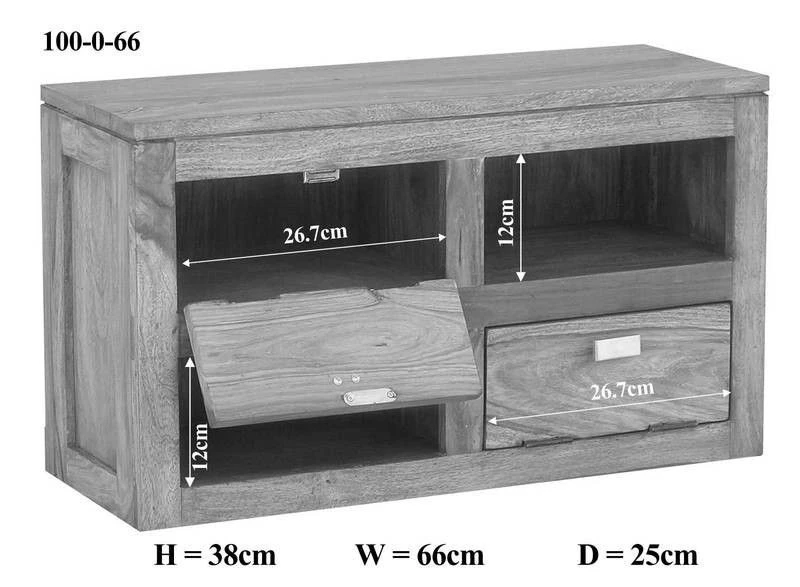 del prodotto mensola in legno di Sheesham / palissandro 66x25x38 grigio scuro oliato NATURE GREY #066