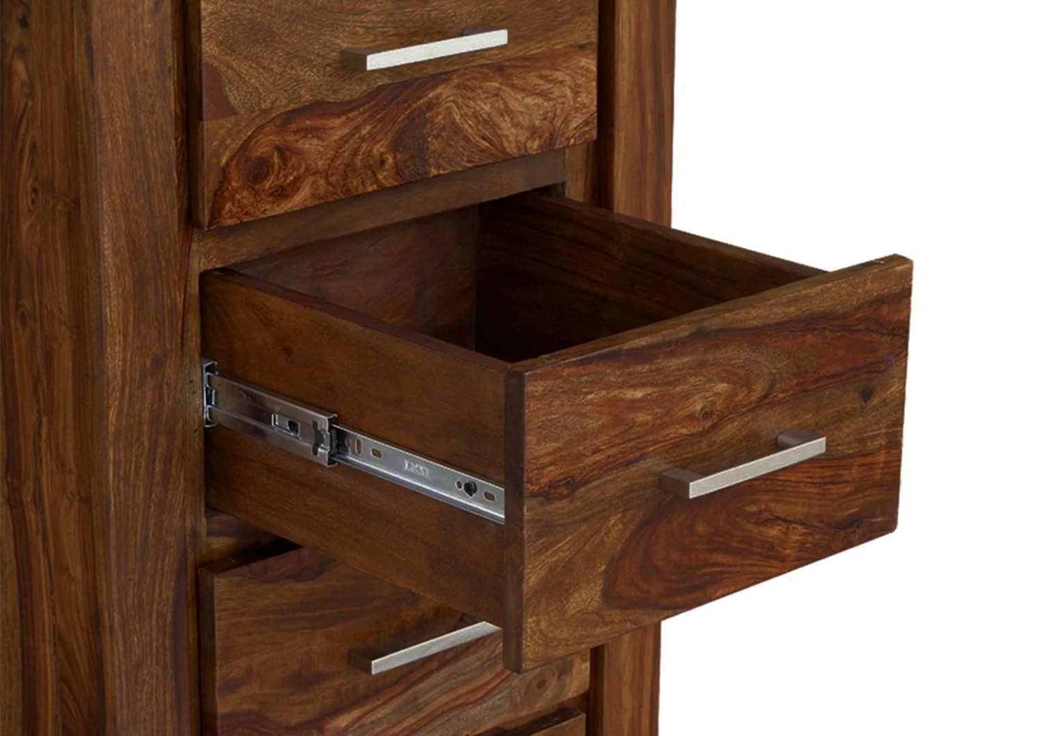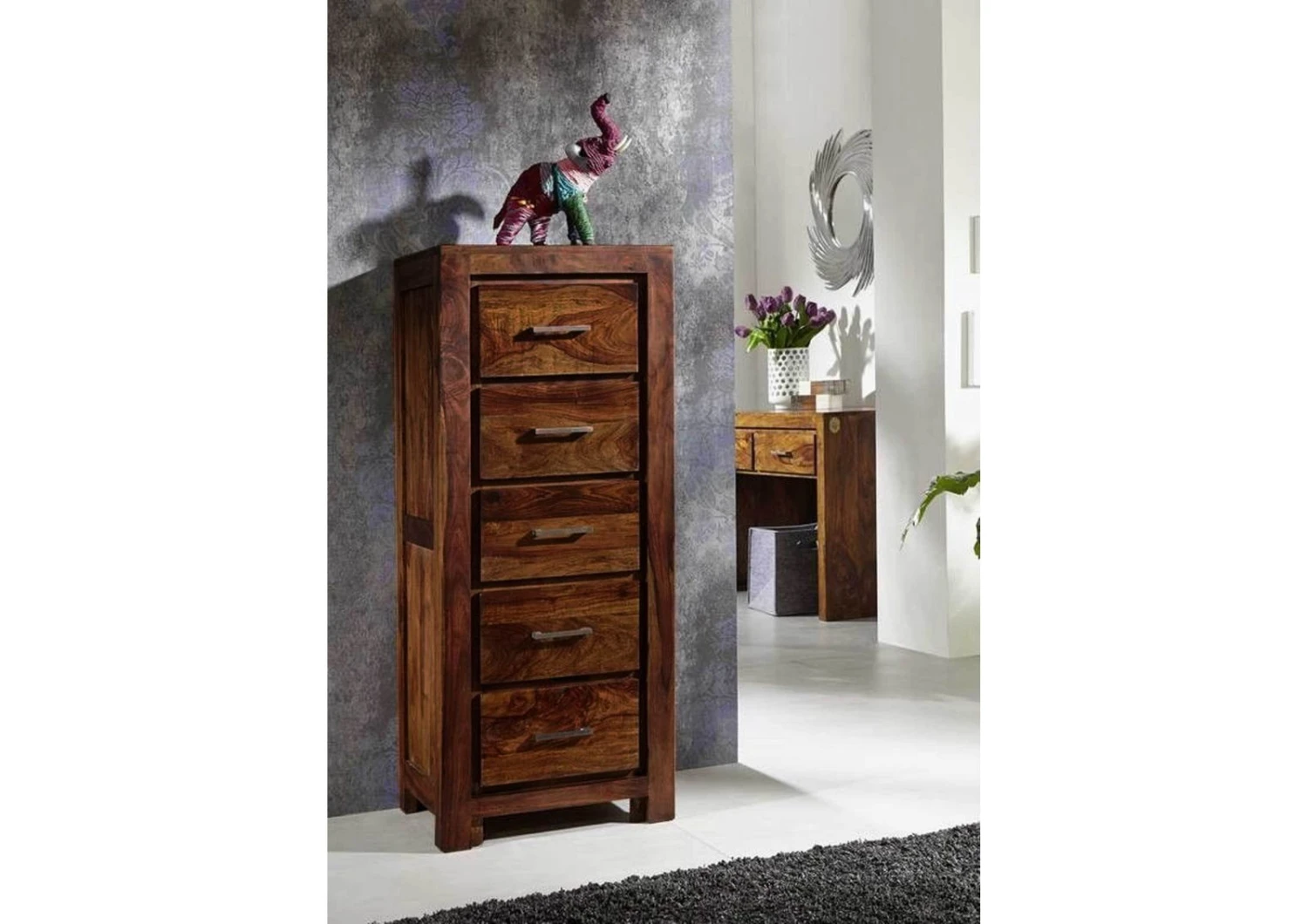 Questa cassettiera in legno massello ti permetterà di riporre vari oggetti di uso quotidiano lontano dalla polvere e ottimizzare l’organizzazione del tuo spazio abitativo. Ideale per un ingresso, un soggiorno o una camera da letto: La semplicità del suo design accrescerà anche la naturale bellezza di sheesham / palissandro, donando un tocco di eleganza e modernità al tuo arredamento.