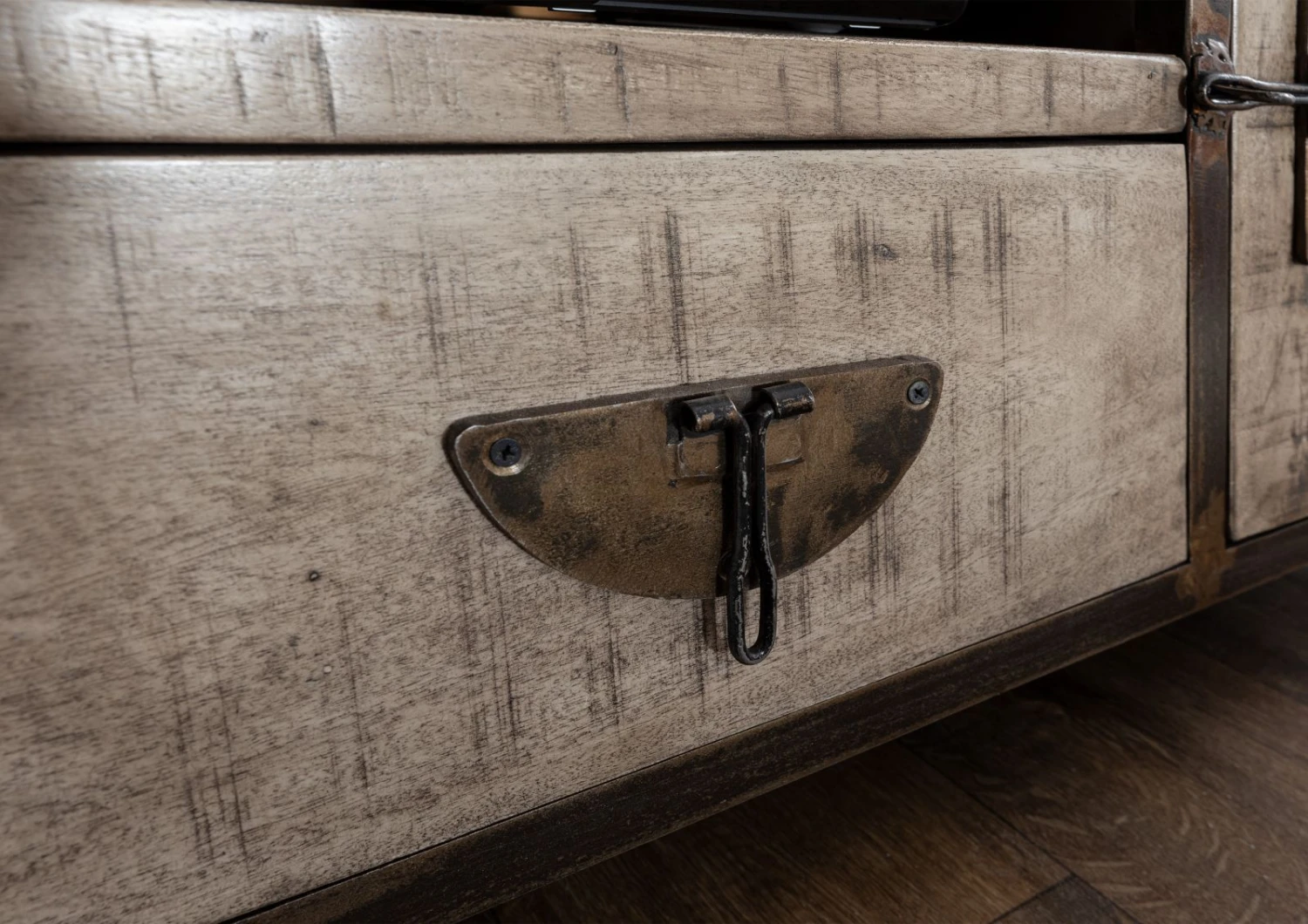 In questo mobile TV della serie TOKYO, il design industriale incontra il fascino urbano della metropoli. Le superfici in legno laccato riflettono il carattere urbano. Gli elementi metallici che incorniciano gli angoli e i bordi del mobile TV hanno un aspetto retro da abbinare perfettamente con gli altri articoli della serie, come anche da acquistare singolarmente.
