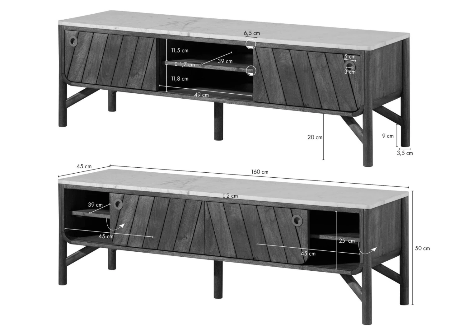 del prodotto Mobile TV in legno di Mango 160x45x50 marrone oliato / vero marmo LOS ANGELES #01