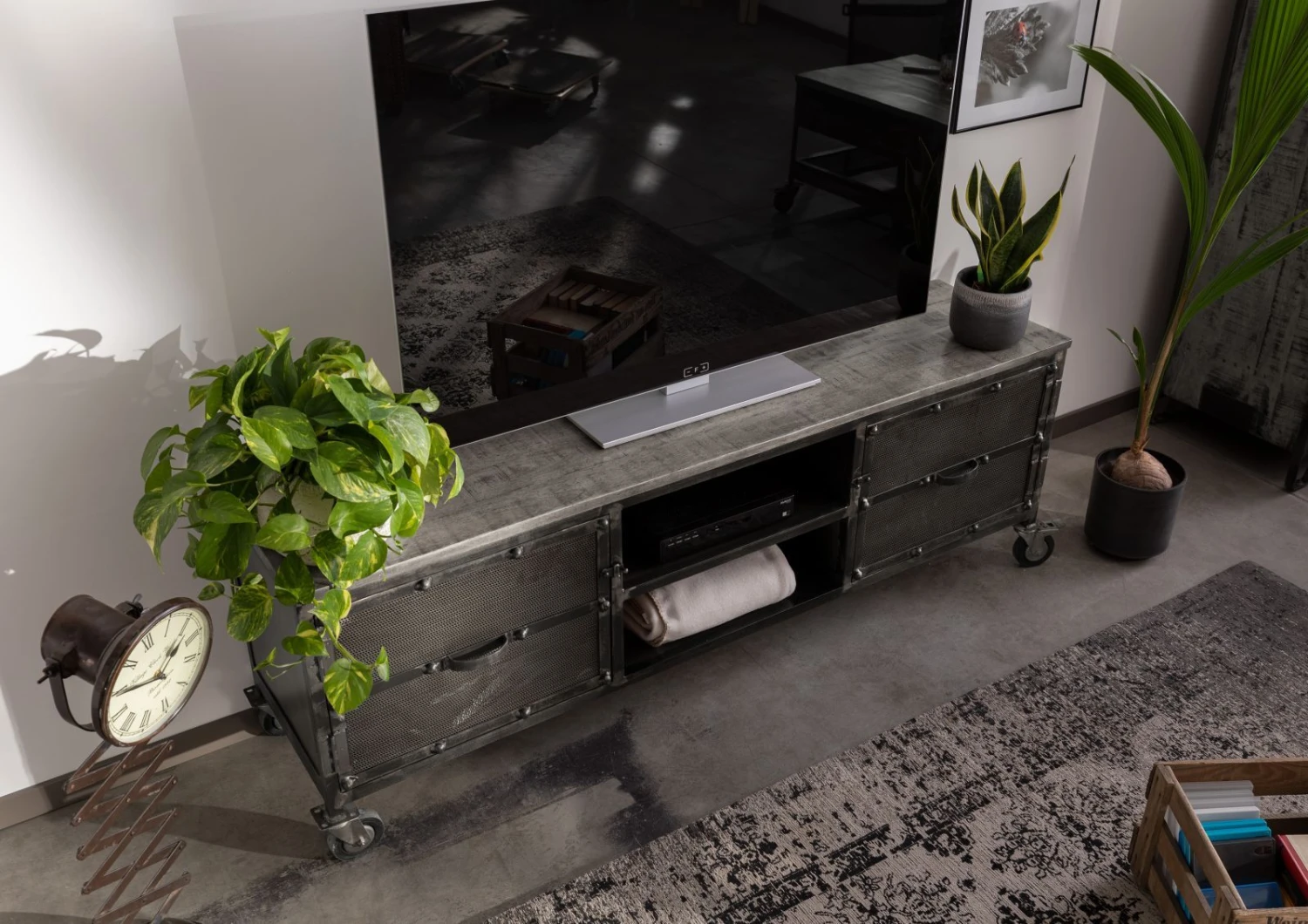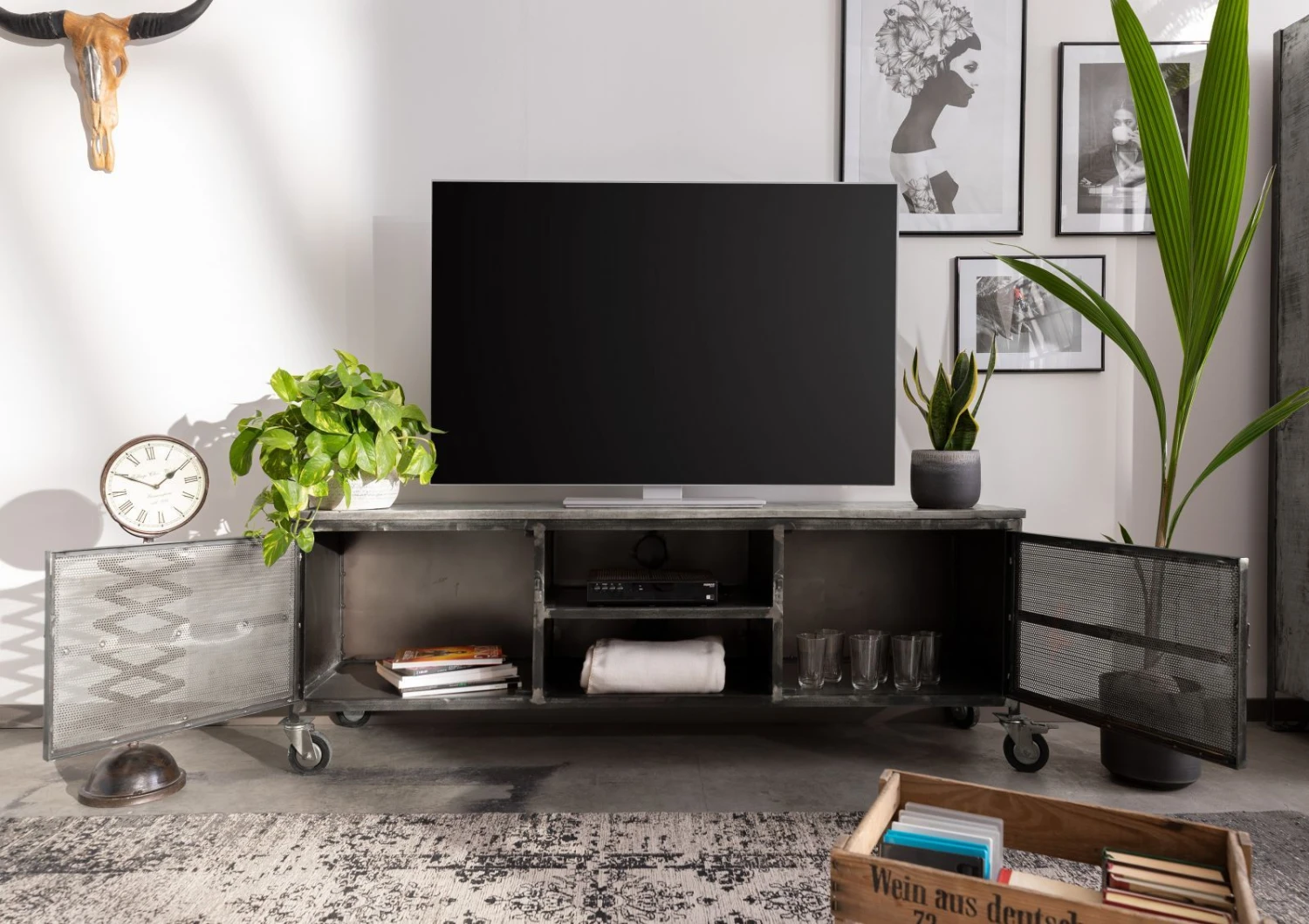 del prodotto mobile TV in legno di Mango 170x40x60 grigio scuro laccato HEAVY INDUSTRY #133