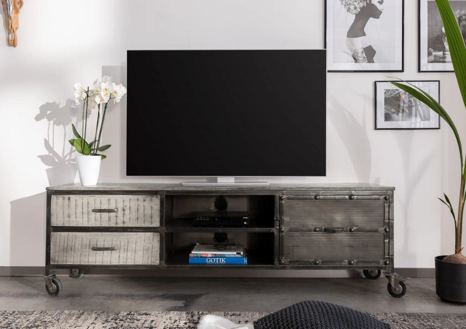 del prodotto mobile TV in legno di Mango 190x40x60 grigio scuro laccato HEAVY INDUSTRY #131