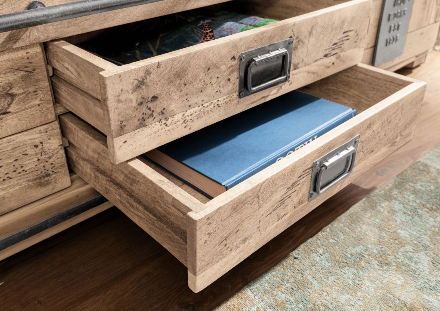 Mobile TV in legno di mango: lo stile industriale incontra il vintage