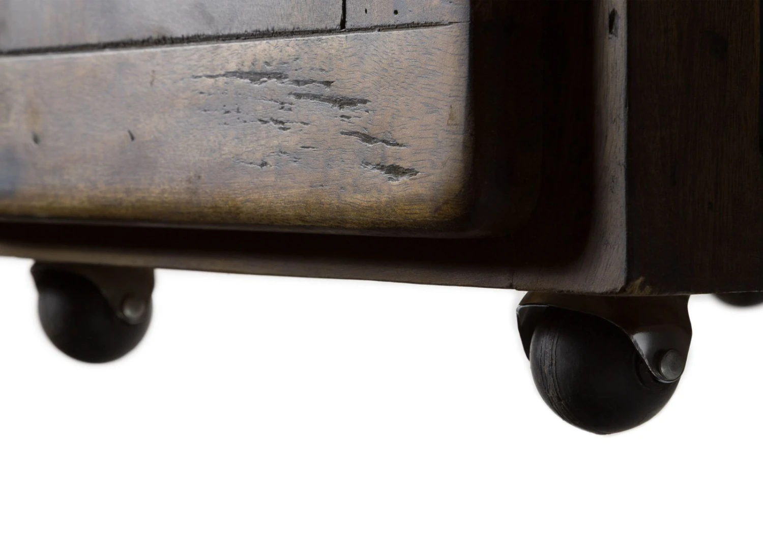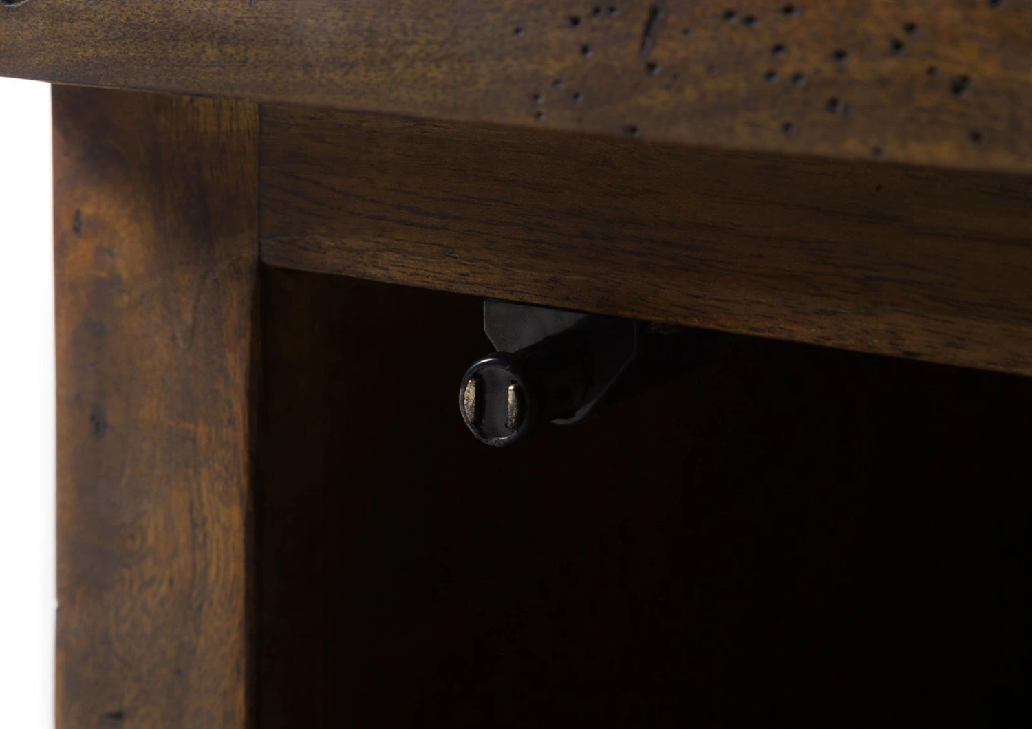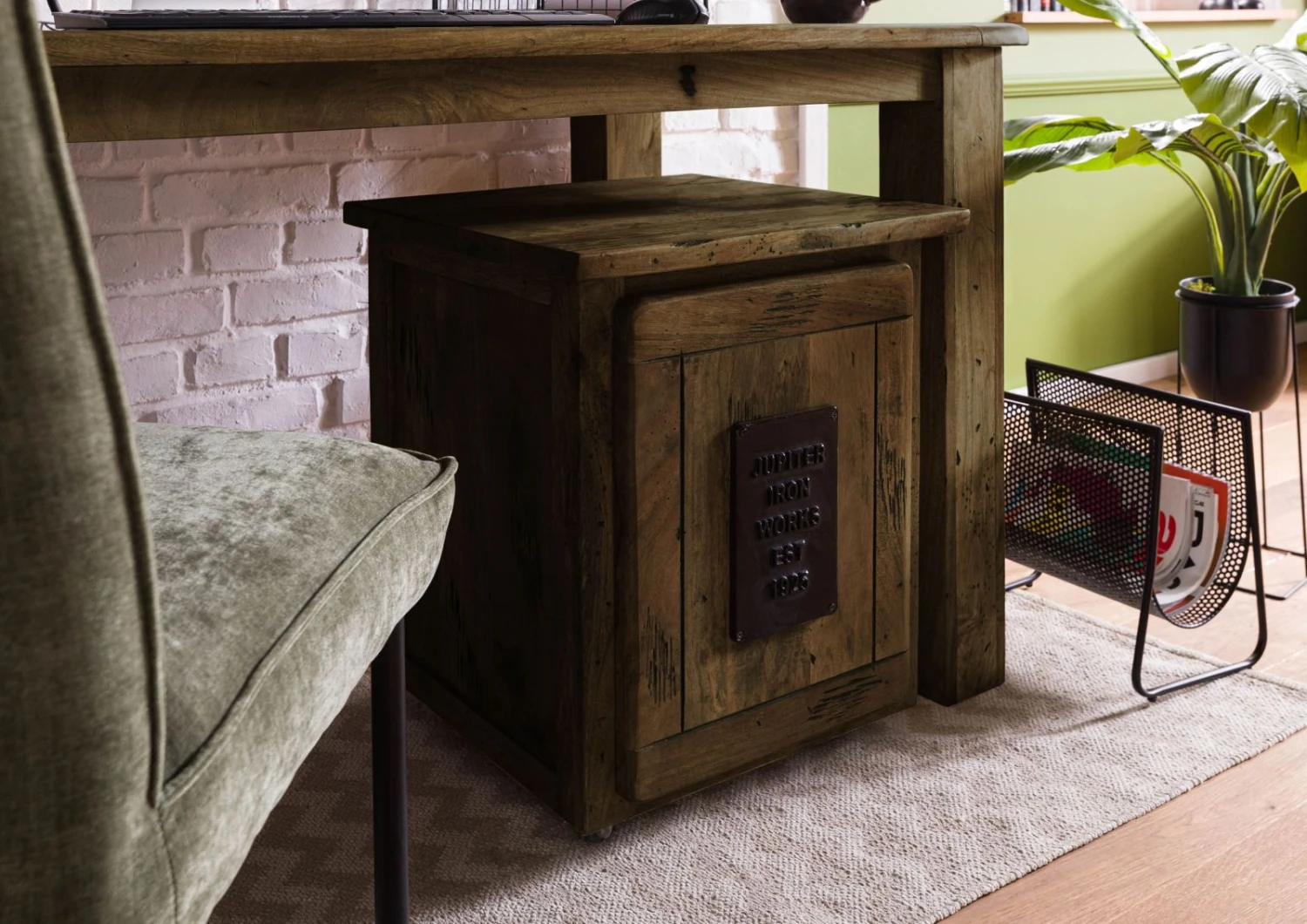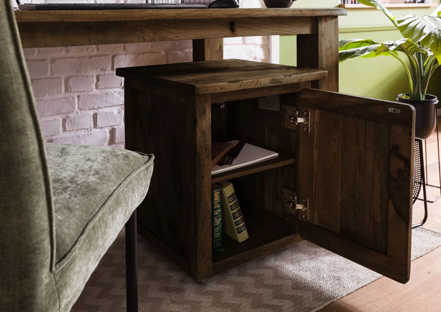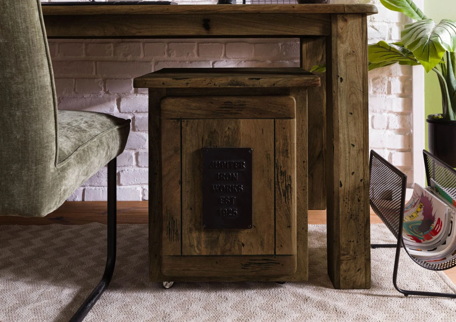 Grazie al suo design di alta qualità, questo mobile cattura sempre lo sguardo. Oltre all’elegante elemento in metallo sull’anta, la finitura delle superfici in legno mette in risalto le tipiche crepe e irregolarità del mango, valorizzando il comodino mobile con un effetto usato di tendenza. Questo piccolo mobile da ufficio è perfetto per un arredamento in stile rustico.