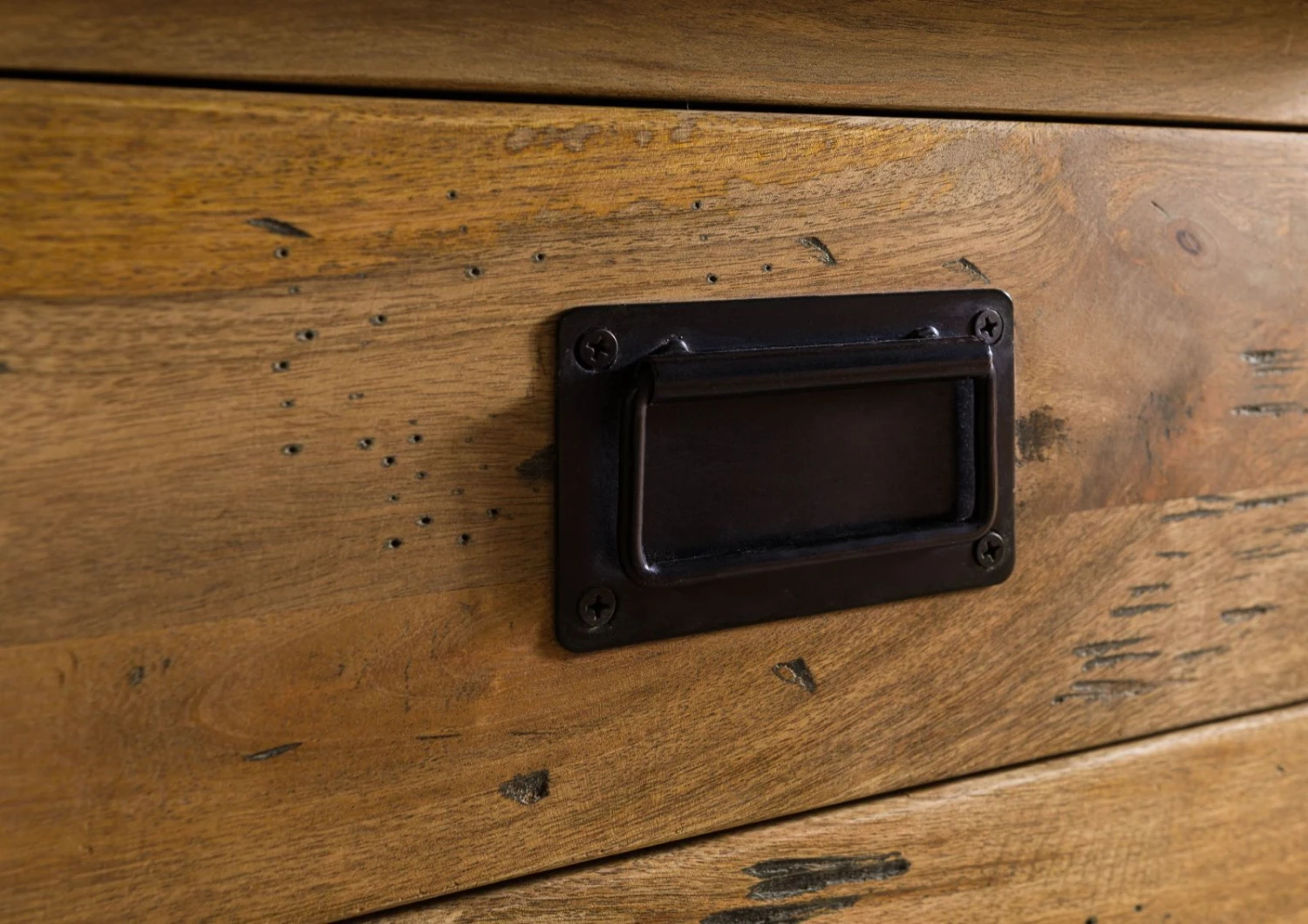 Stile rustico e moderno: questo comodino mobile ha uno stile unico unito a un’eleganza equilibrata. Grazie a una finitura di alta qualità, le superfici del mango massiccio presentano un carattere proprio, con ulteriori irregolarità e graffi per un effetto usato di tendenza. Le maniglie in metallo nero dal gusto rétro catturano immediatamente l’attenzione e completano il design industriale.