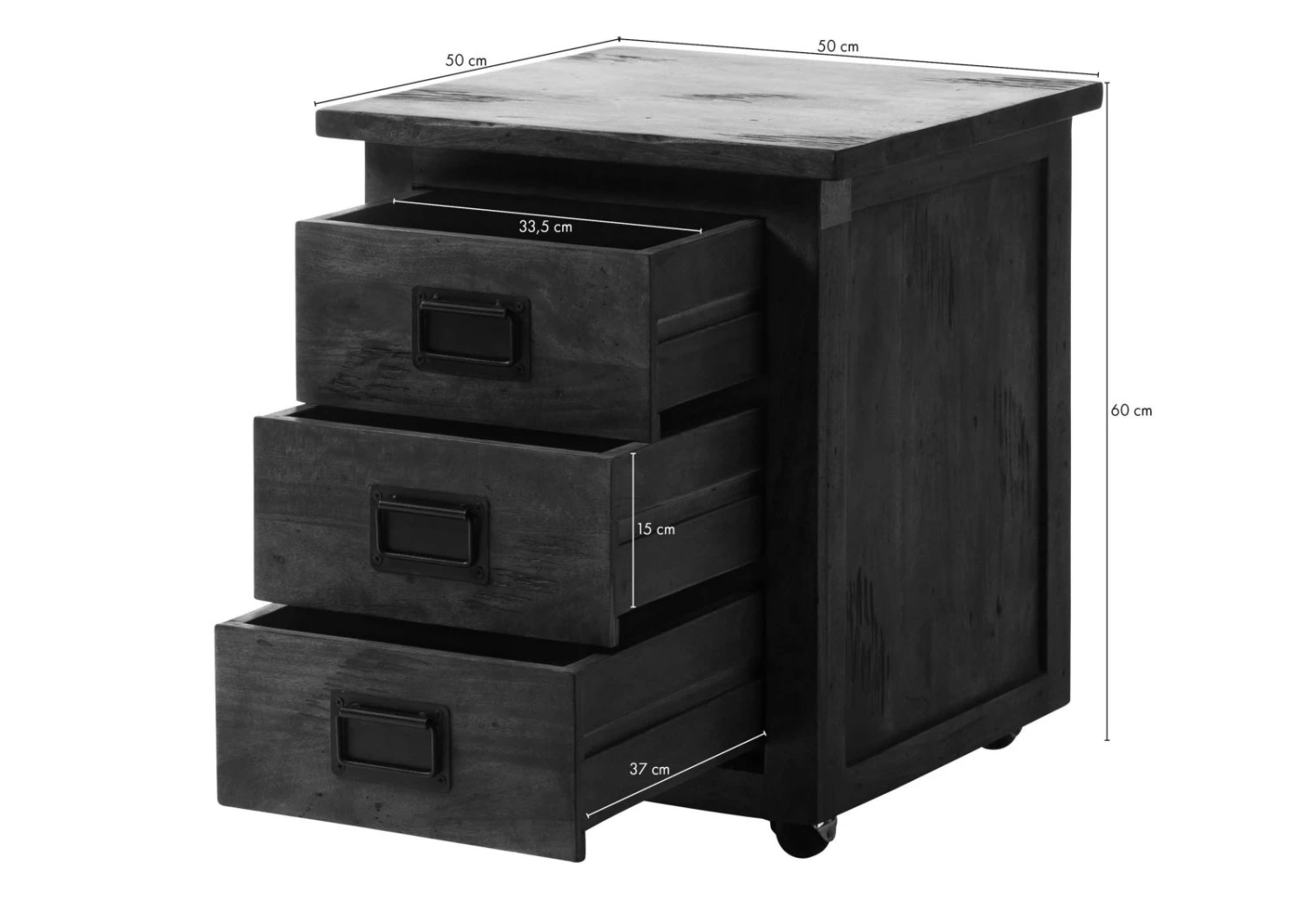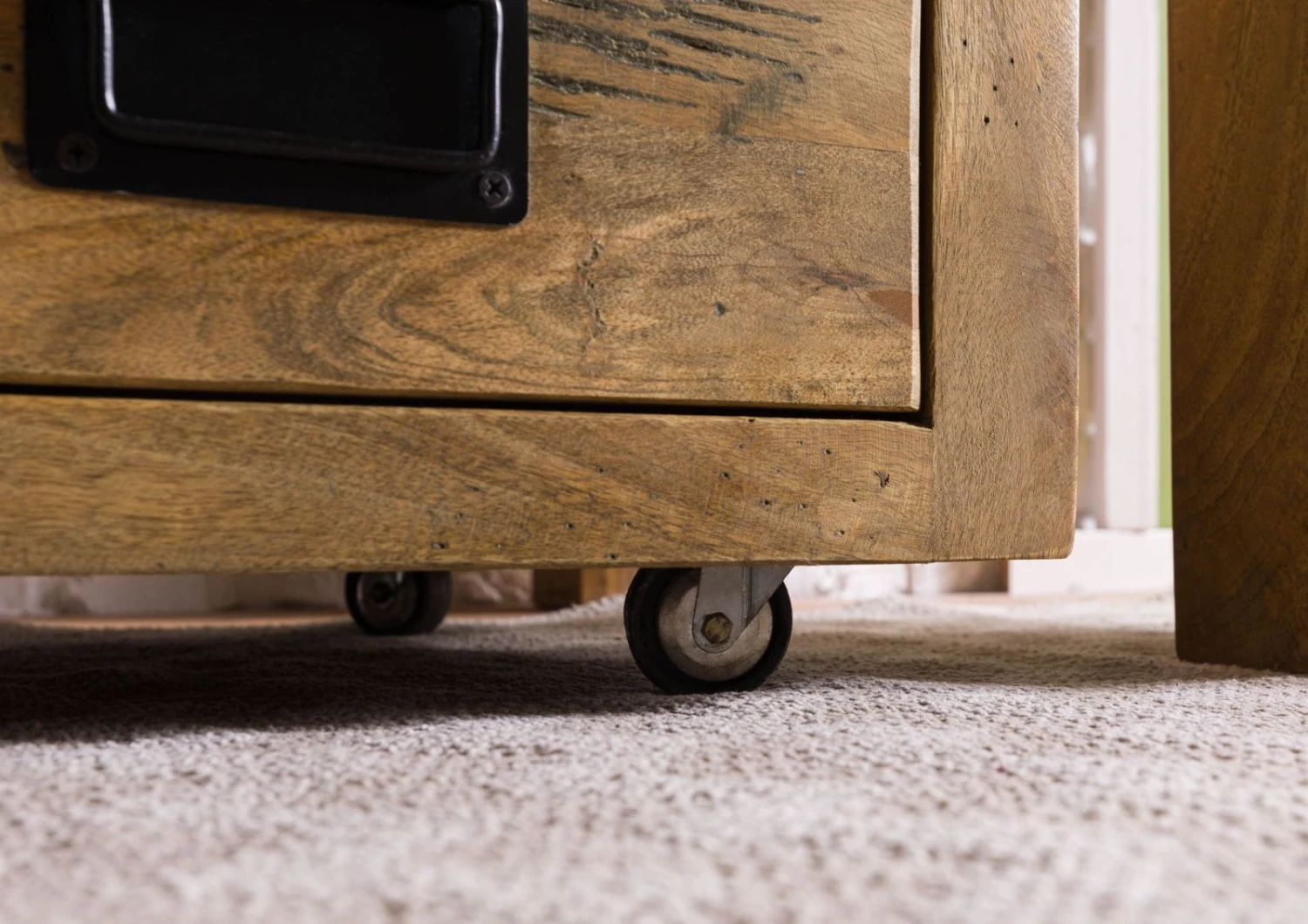 Comodino mobile in legno massiccio con cassetti: ordine e stile industriale