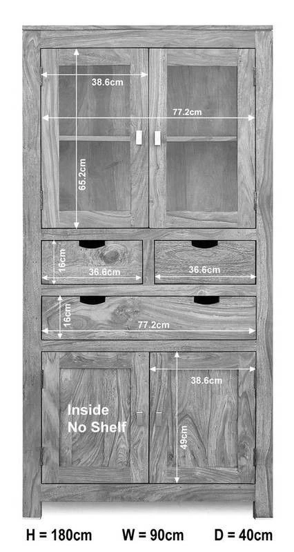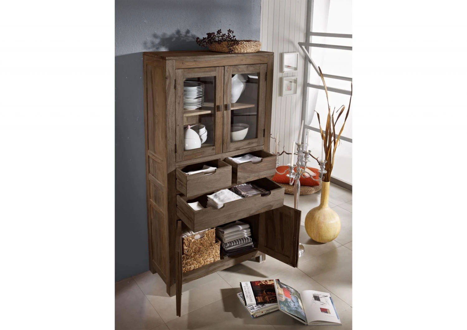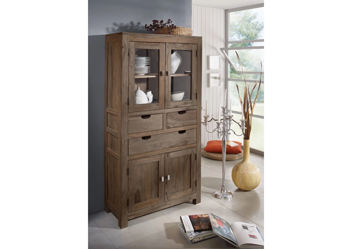del prodotto NATURE GREY #61 Mobile dispensa in legno di sheesham – oliato / grigio 90x40x180
