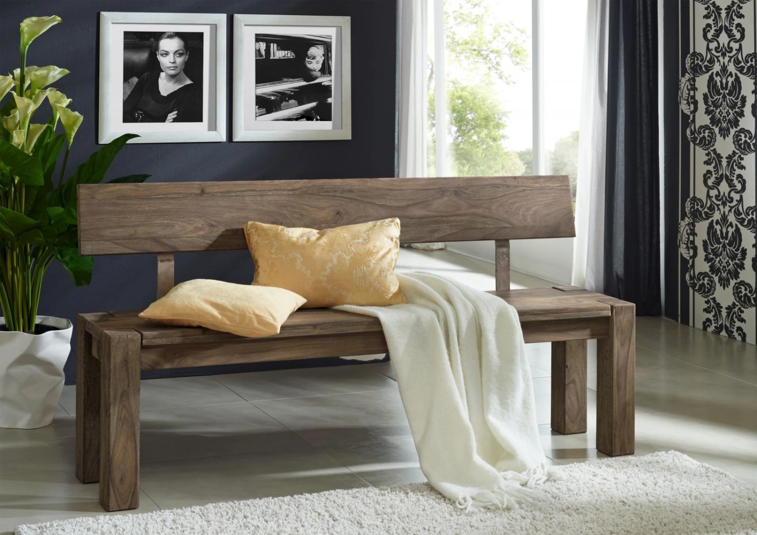 del prodotto NATURE GREY #701 Panca con schienale in legno di sheesham – oliato / grigio 160x35x76