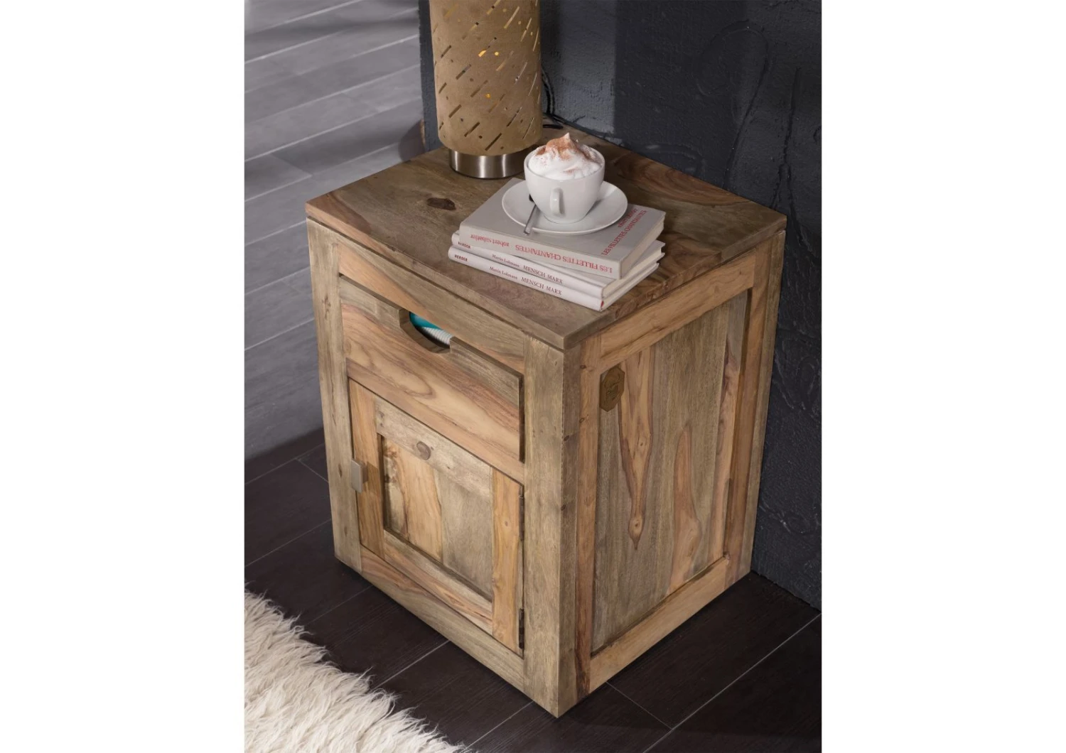 del prodotto NATURE GREY #713 Comodino in legno di sheesham – oliato / grigio 45x40x60