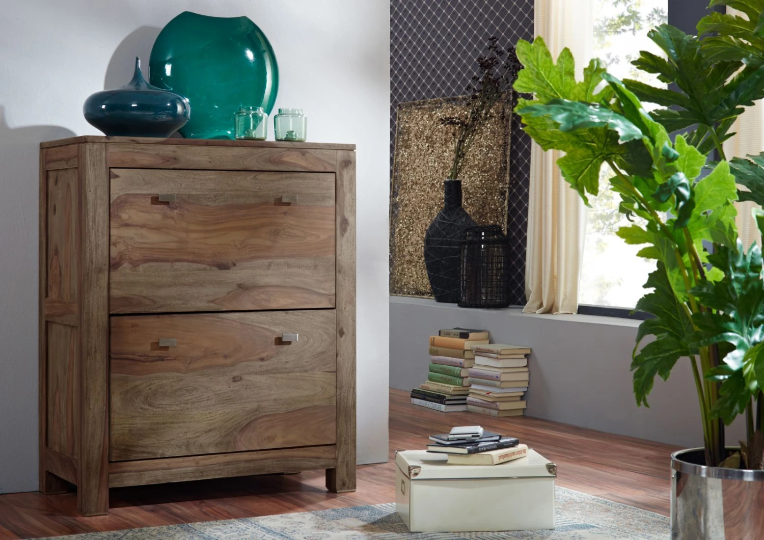 del prodotto NATURE GREY #96 Scarpiera in legno di sheesham – oliato / grigio 80x41x100