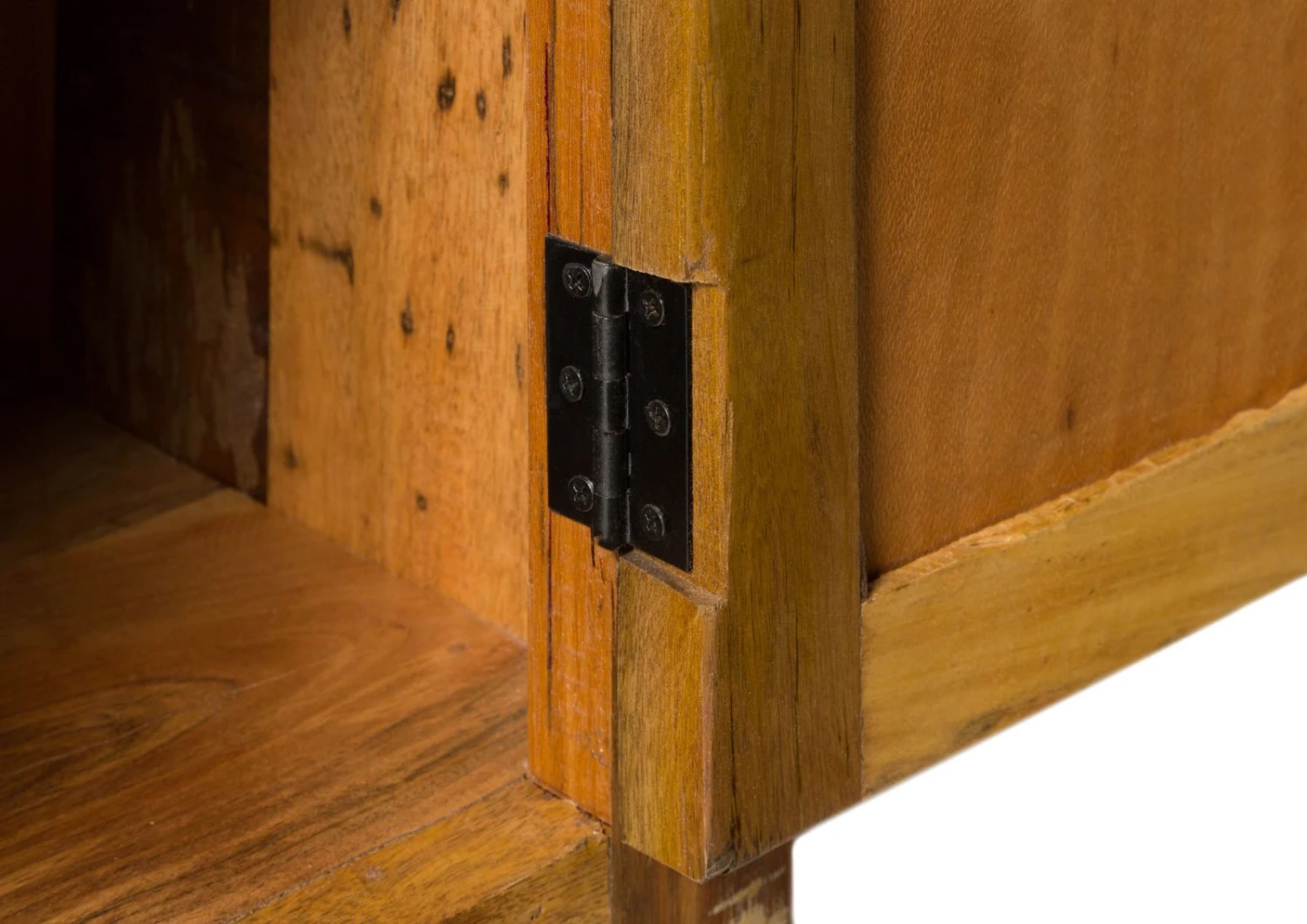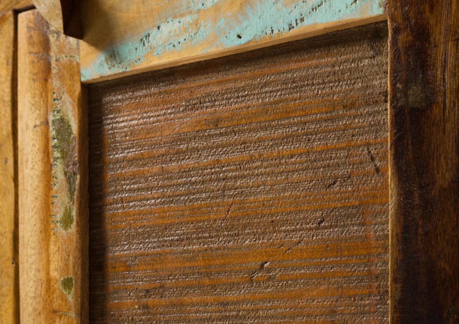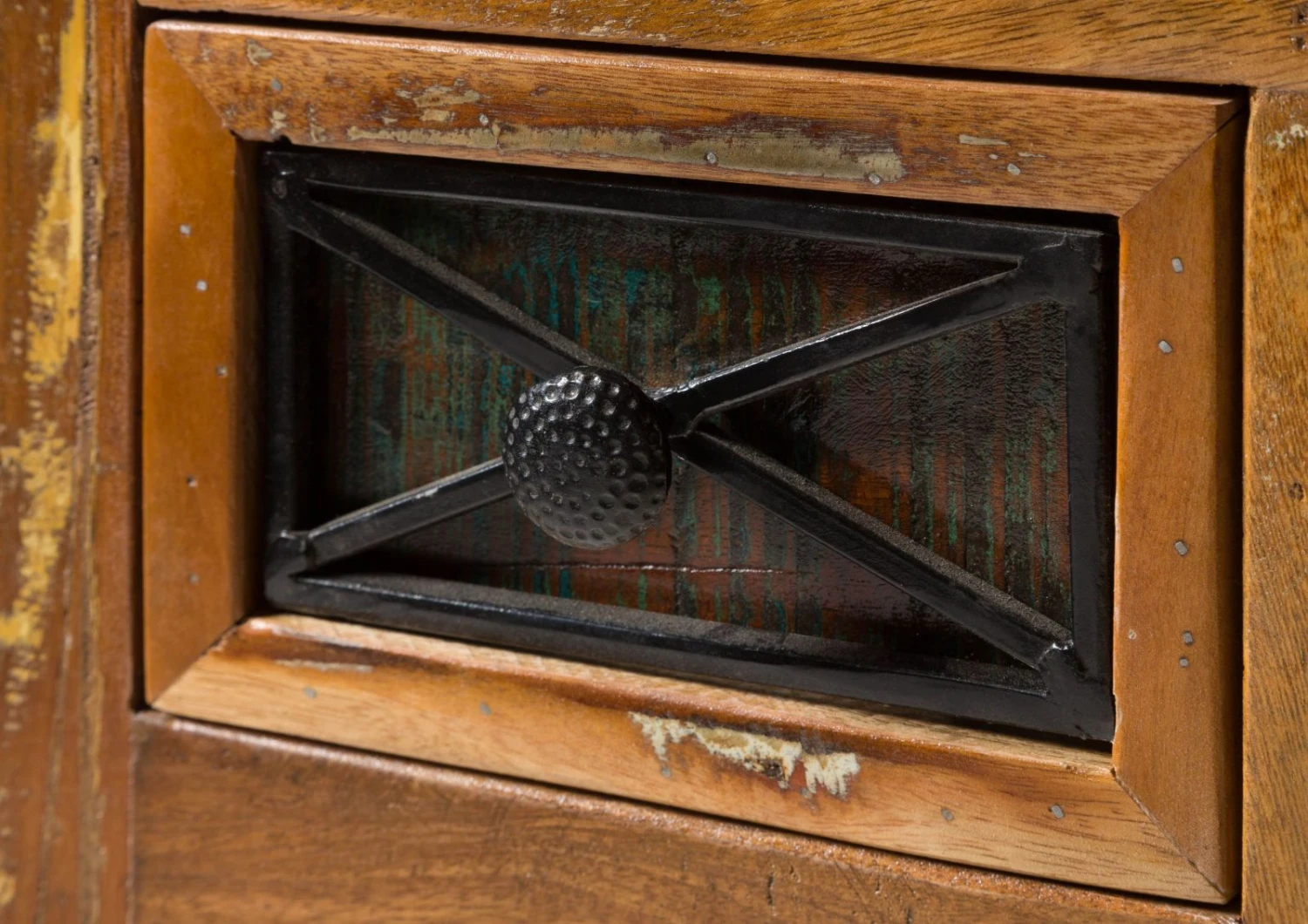 - Comò vintage in legno massiccio riciclato combinato con legno di mango e d’acacia
