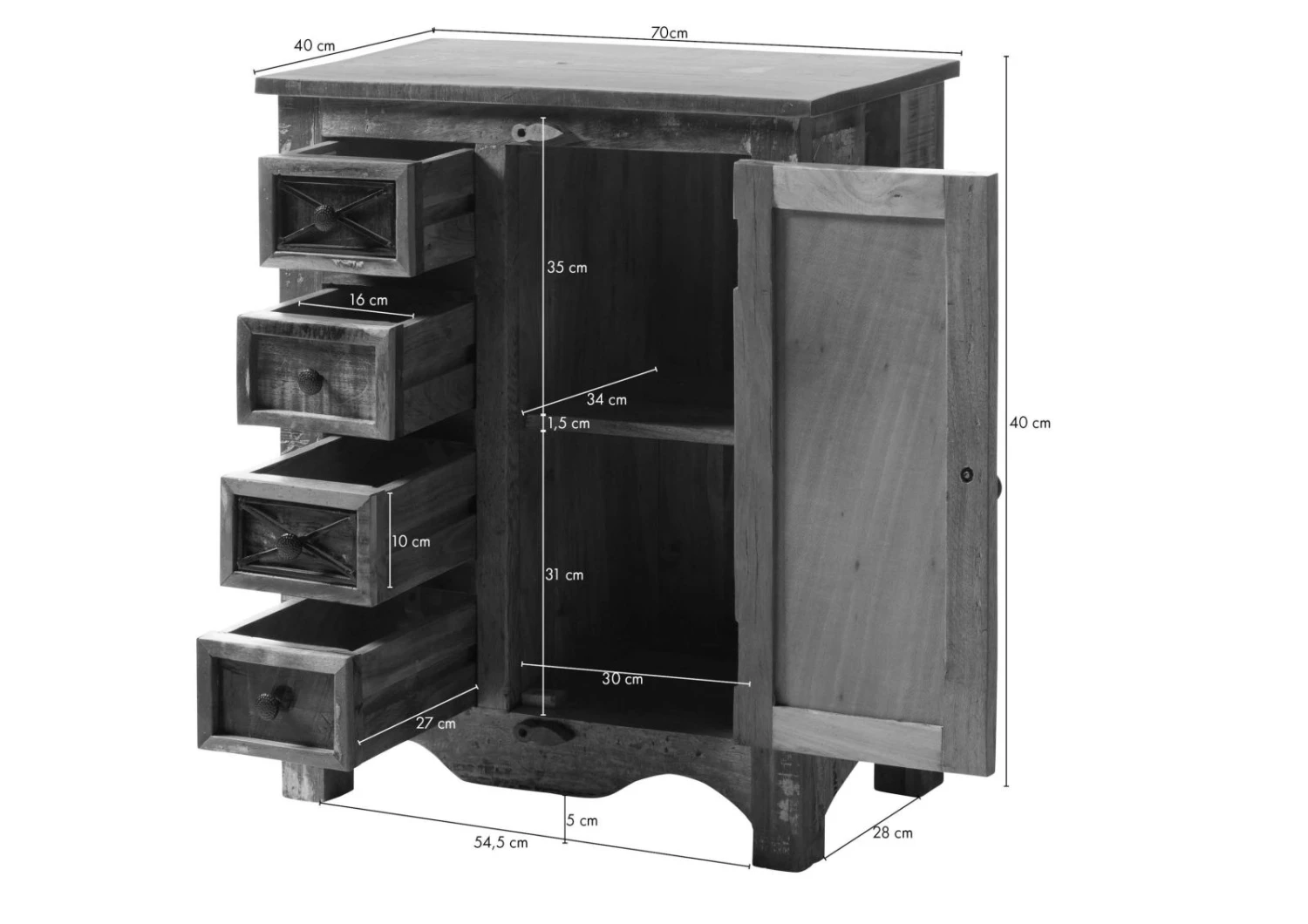del prodotto NATURE OF SPIRIT #127 Comò in legno riciclato – laccato / multicolore 70x40x85