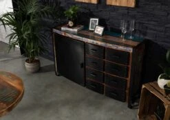 Credenza In Legno Di Legno Riciclato 143x43x90 Multicolore Laccato INDUSTRIAL #102