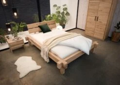 JANGALI #111 Letto Matrimoniale A Travi In Legno Di Quercia Selvatica – Oliato / Bianco 160×200