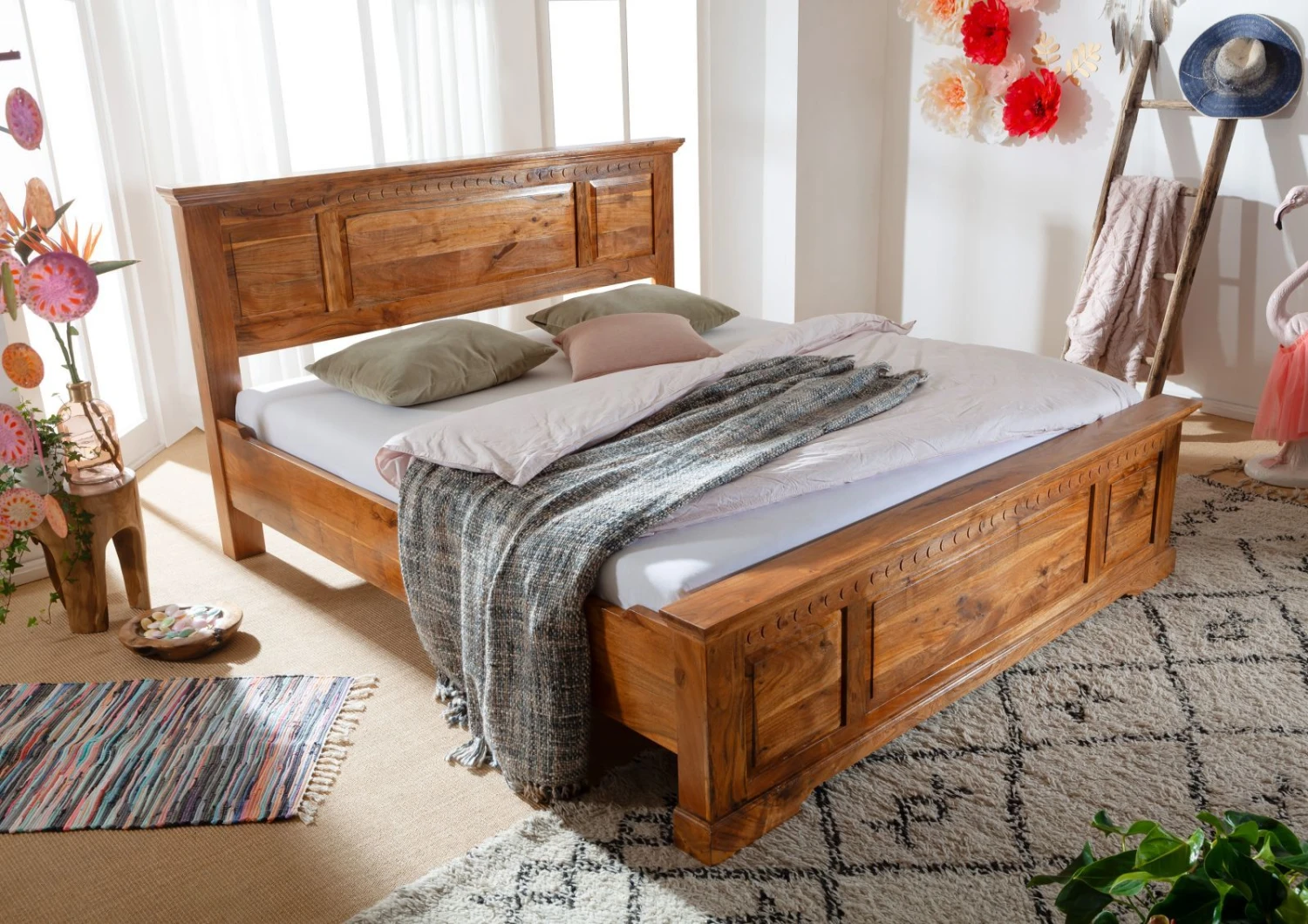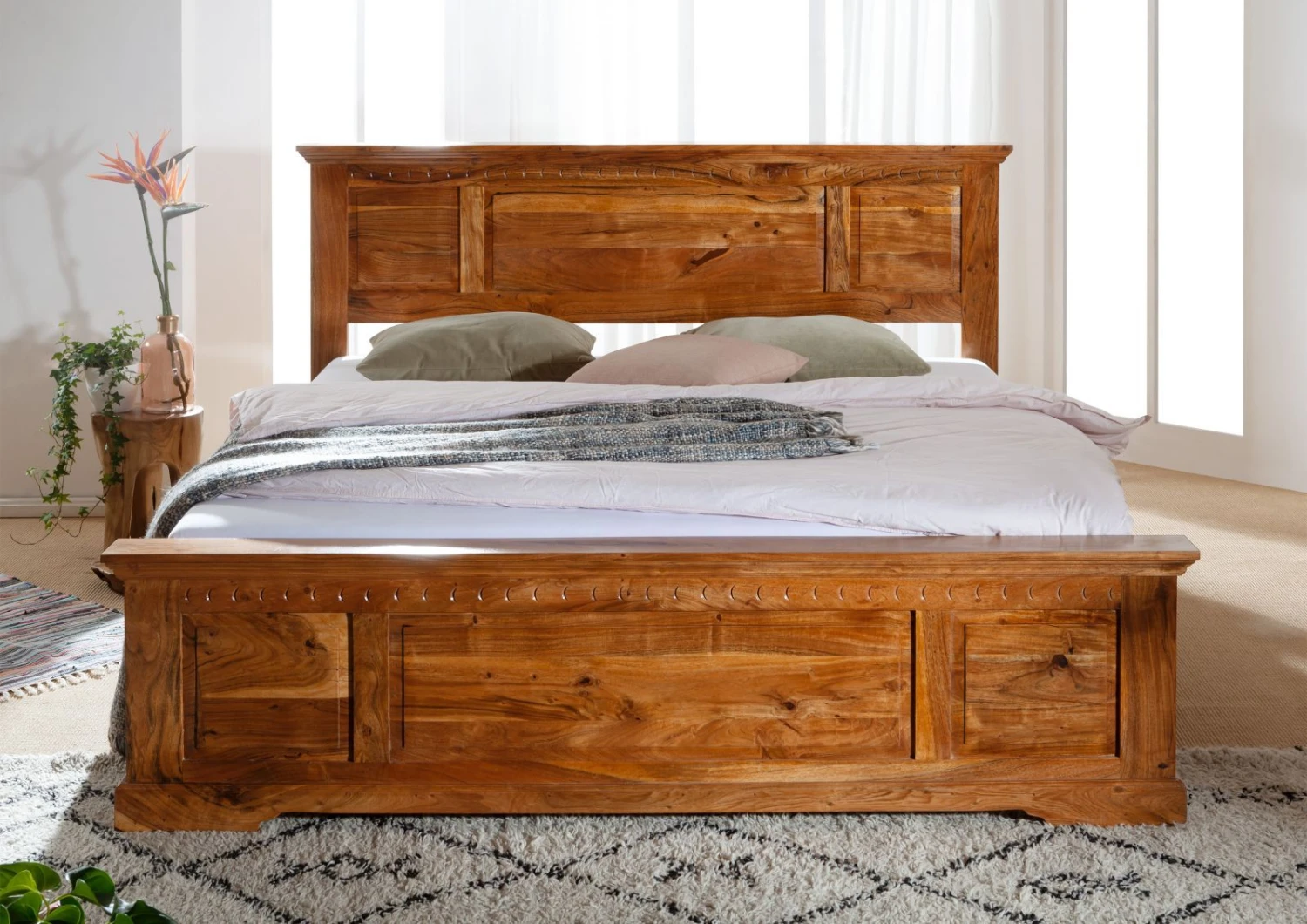 del prodotto OXFORD #0315 Letto matrimoniale in legno di acacia – laccato / miele 200×200