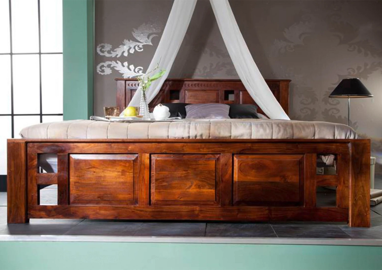Avete mai desiderato di andare a dormire e di risvegliarvi principi o principesse? Se la risposta è sì, questo letto trasformerà il vostro sogno in realtà perché quando vi sveglierete tutti i giorni in questo letto vi sembrerà quasi di essere in un castello. L’elegante letto Classic della linea di mobili Oxford è stato realizzato in stile coloniale e possiede magnifiche venature dovute alla straordinaria durezza del legno di acacia. Dipinto di un colore nocciola e dotato di una superficie verniciata, questo letto matrimoniale starà benissimo nella vostra camera da letto. Naturalmente, è un letto massiccio e il suo stile rispecchia quello delle case padronali indiane e africane dei tempi del colonialismo. I mobili in stile coloniale sono ancora in voga al giorno d’oggi e si ritrovano nei tanti tipi di arredamento che danno molta importanza a stile ed eleganza. Questo letto matrimoniale affascina per i bei colori e le venature del legno visibili su tutta la sua superficie. Acquistando questo letto, avrete un pezzo unico che non troverete in nessun’altra parte del mondo, perché il legno utilizzato per la sua realizzazione non esiste da nessun’altra parte. Questo letto estremamente stabile vi offrirà sempre un sonno ristoratore. Ai piedi del letto e sulla testiera sono stati realizzati dei pannelli intagliati e delle piccole fessure che lo rendono ancora più elegante. Le curatissime decorazioni sono il vanto di questa straordinaria linea di mobili che si è prefissa l’obiettivo di vendere prodotti naturali lavorati con estrema precisione. Potrete dormire comodamente su questo magnifico letto sostenuto da quattro piedi dalla forma spigolosa. I pannelli danno un aspetto più che moderno a questo mobile in stile coloniale.