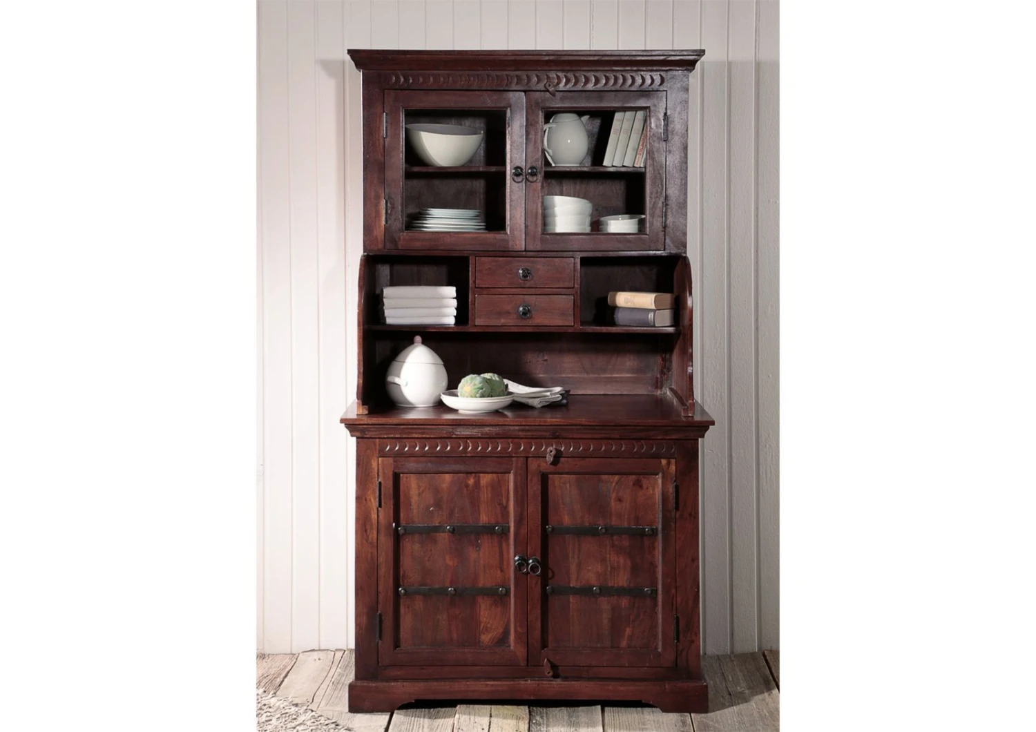 L’armadio credenza della linea di arredamento OXFORD si caratterizza per il meraviglioso stile coloniale e ci fa sentire trasportati nell’epoca in cui gli inglesi e gli indiani erano di casa in una certa parte dell’Africa. Di questa epoca rimane lo stile di arredamento, che ancora oggi è molto richiesto. Vi appartengono oggetti dal design meraviglioso e di qualità pregiata, dato che questa linea di arredamento non utilizza altro che legno indiano per la produzione dei suoi mobili. Naturalmente, la superficie viene laccata per garantire la protezione e dipinta con una tonalità nocciola. Come sempre, anche questo mobile è massiccio e robusto, dato che l’acacia si distingue per durezza e resistenza, perciò questo legno è usato volentieri per mobili di questo genere. La credenza è costruita in modo tale che nella parte superiore si trovano due portelle a vetri con due scaffali all’interno. Inoltre, al centro si trovano due piccoli cassetti e a sinistra e a destra dell’armadio si trovano dei piccoli vani aperti. Poi, c’è anche un ripiano più grande e, grazie alla sporgenza della credenza, avrete anche qui una superficie d’appoggio. In basso si trovano due portelle in legno guarnite in ferro, dietro le quali si nasconde un grande spazio. Il mobile si regge su quattro piedi piani. L’intera credenza è dotata di ornamenti. Anche per questo è famoso lo stile coloniale, e la serie di arredamento OXFORD dà una grande importanza alle decorazioni che, in questo caso, sono arabeschi a forma di mezza luna. Non importa che cosa scegliate di mettere in questa credenza, sicuramente il mobile presenta uno spazio abbastanza grande per contenere molti oggetti. Prima di tutto, la diversificazione delle funzioni consente che su uno dei suoi lati ci sia uno scomparto, ma anche portelle in legno, portelle in vetro e scaffali aperti. In questo modo, si possono mettere in mostra le proprie cose dietro le portelle in vetro, ma anche far sparire le cianfrusaglie. Per informazioni sui tempi indicativi di consegna, vi preghiamo di fare riferimento a quanto sopra indicato. Consegniamo i vostri ordini nel più breve tempo possibile, direttamente a casa vostra.