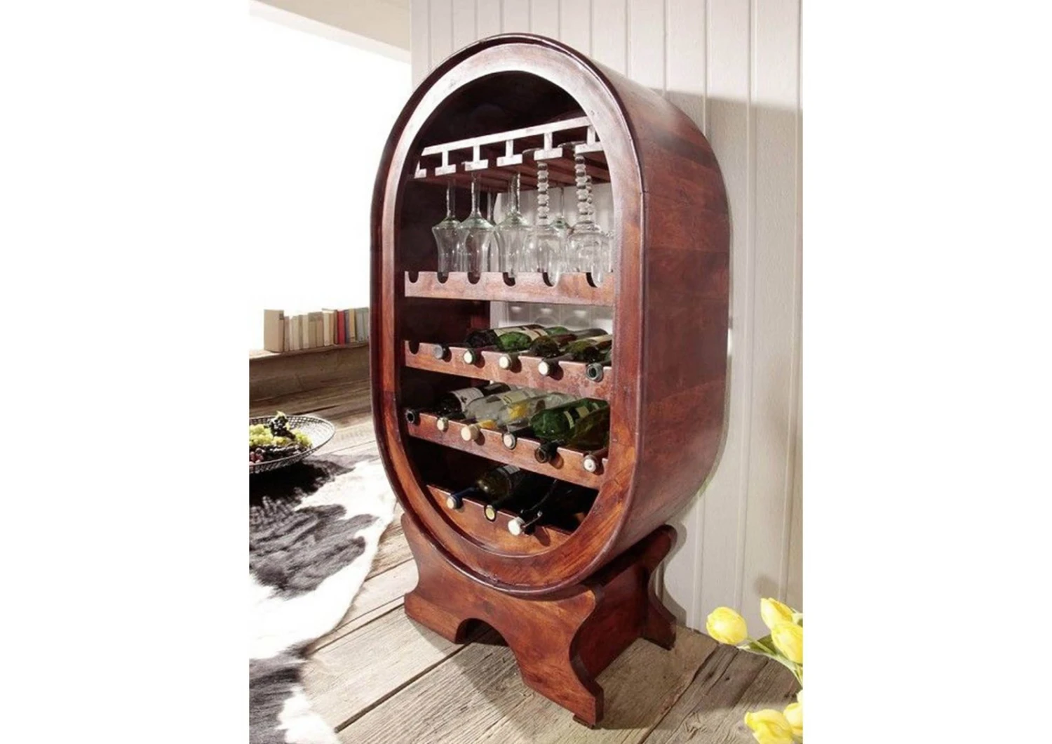 del prodotto OXFORD #533 Portabottiglie in legno di acacia – laccato / nougat 67x35x120