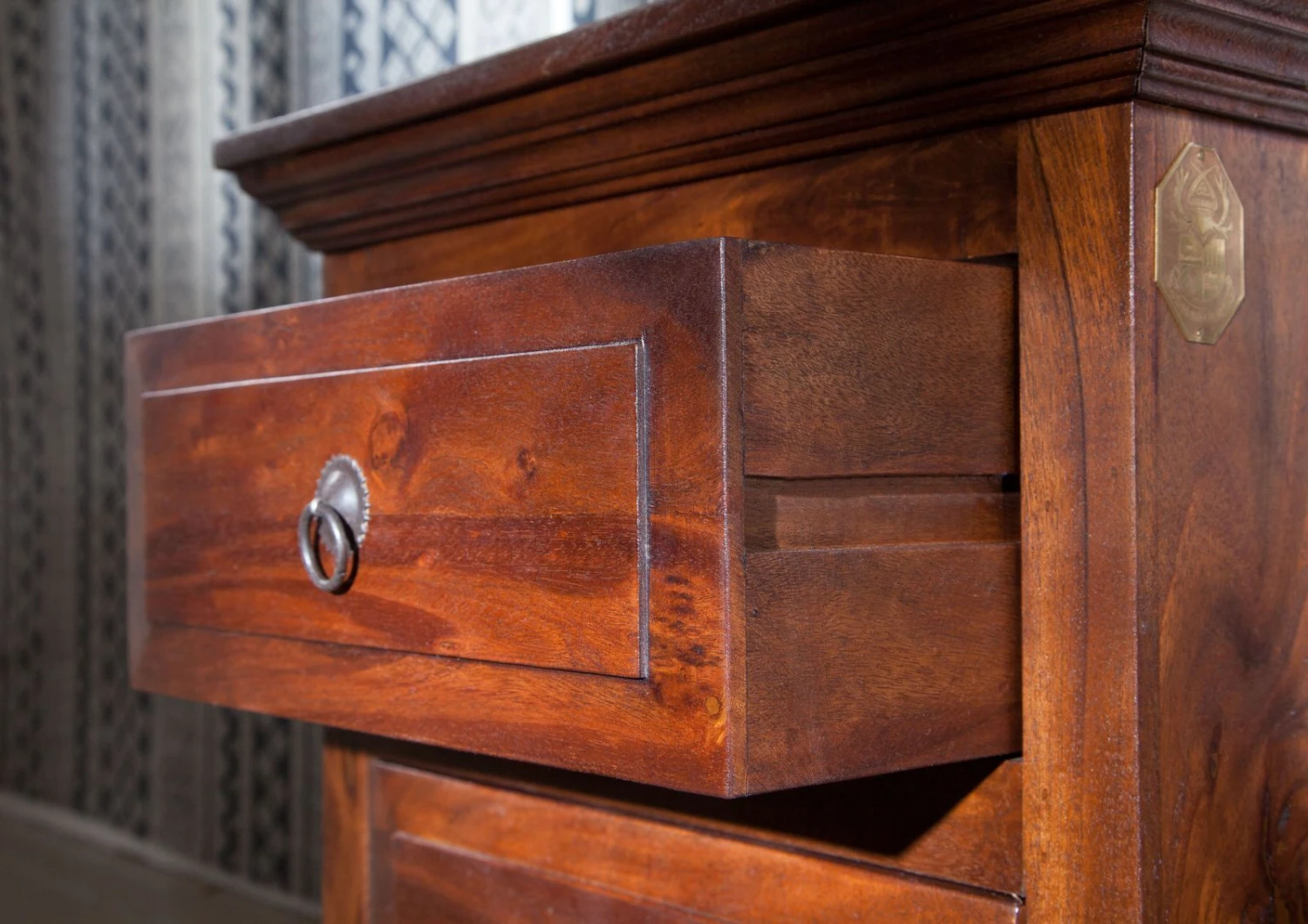 Questo comodino in stile coloniale è ideale come spazio di archiviazione di vari oggetti lontano dal polvere in ogni parte di casa. La tinta torrone di questo piccolo pezzo di mobili porterà un tocco caldo e accogliente alla vostra camera. Proprio come il resto della nostra collezione OXFORD, questo comò di mentalità coloniale contribuirà a portare un tocco elegante di originalità al vostro arredamento d’interni.