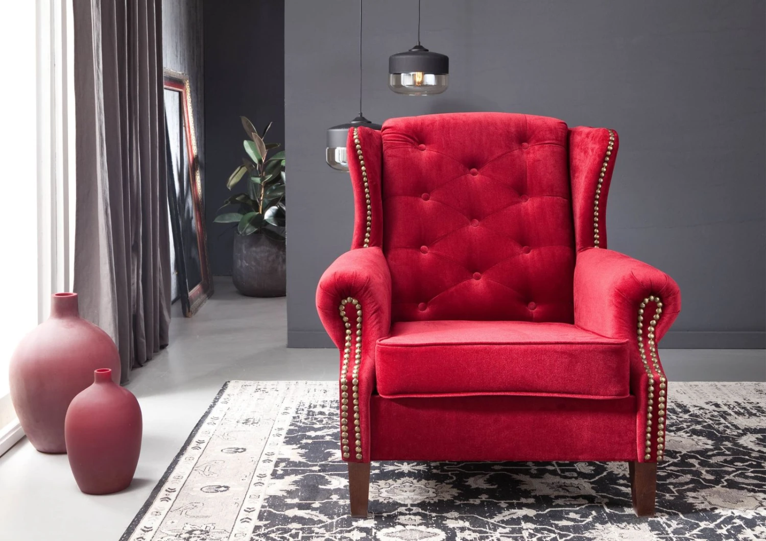 del prodotto OXFORD Poltrona Chesterfield – stoffa / rosso – stile Coloniale 102x93x102