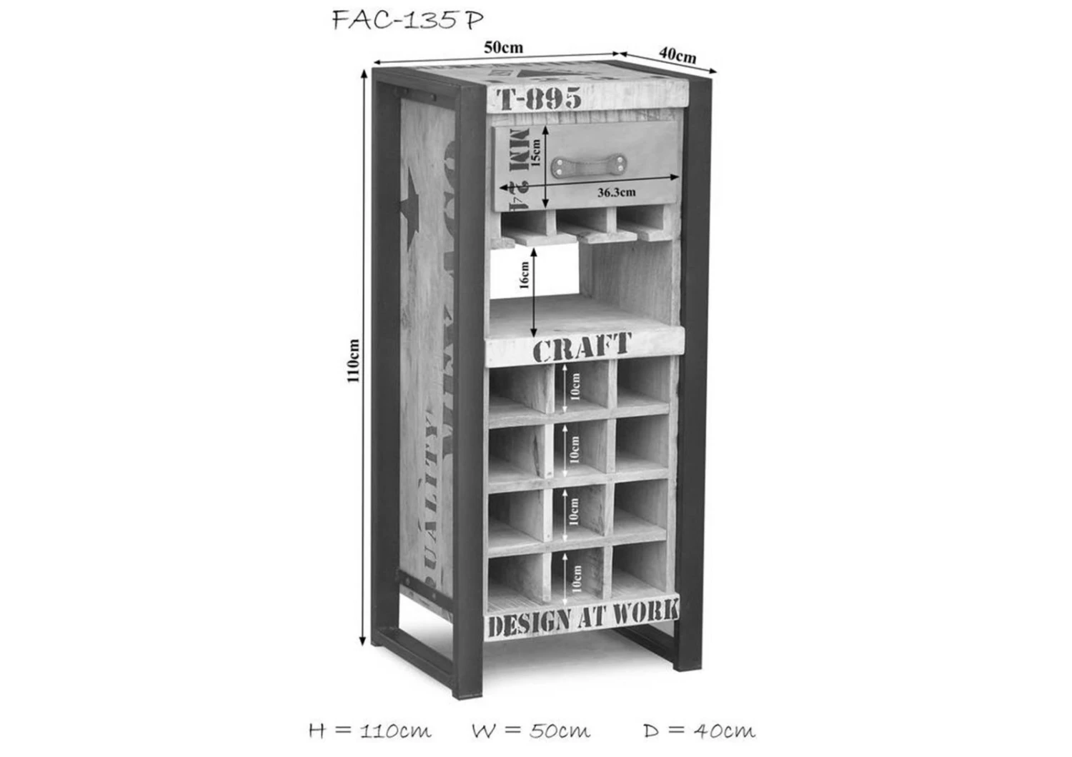 Straordinario elemento della serie di mobili FACTORY! Questo scaffale per vino è un pezzo veramente straordinario tra le offerte dei nostri mobili! Non solo lo stile moderno e industriale – che lo spettatore può ammirare – ma anche la scelta dei materiali e lo spettacolare design affermano la straordinaria creatività del progettista. In questo particolare stile, i materiali contrastanti sono alla base della produzione di mobili singolari. Questo scaffale per vino FACTORY, dal corpo in legno di mango di alta qualità, è stato realizzato dopo una scrupolosa scelta di attrezzature e accessori completi per vini. Per gli amanti dell’ottimo vino, questo scaffale per vino è una parte indispensabile di arredo che può trovare la sua posizione di utilizzo in una cucina o in un salone. Come mobile di bell’aspetto e utile per la conservazione di vini pregiati, bicchieri corrispondenti e accessori necessari, questo scaffale per vino può trovare il posto giusto a ciascuna di queste cose. Può anche contenere bottiglie di vino in modo “artistico” e sicuro nei vani aperti sul fondo. Inoltre, troverete raffinati listelli di legno per conservare in modo pratico i bicchieri. Il dettaglio speciale, in questo caso, è rappresentato dal gancio che permette di riporre i bicchieri capovolti. È stato evitato il vetro interno, e questo risulta estremamente utile nella vita di tutti i giorni. Nel cassetto sovrastante potranno trovare il loro posto apribottiglie, tovaglioli e simili, che saranno così sempre a disposizione. Oltre a questa raffinatezza, questo mobile risulta anche frutto di un metodo di produzione originale. Pertanto, l’intero corpo in legno è stato decorato con scritte giovanili e figure che gli conferiscono un’espressione armoniosa, in aggiunta alla venatura traslucida del legno di mango. I telai metallici servono come sezioni laterali e assicurano la stabilità e la resistenza nel tempo, qualità necessarie e richieste da questo tipo di mobili. Un manico in pelle è stato aggiunto al cassetto come marchio di fabbrica tipico della serie FACTORY. Adatto alla forma moderna dello scaffale per vino, questo è stato fissato permanentemente con rivetti metallici. Per i termini di consegna approssimativi di questo prodotto, si prega di fare riferimento alle informazioni di cui sopra. Consegniamo il vostro ordine il più presto possibile a casa vostra.