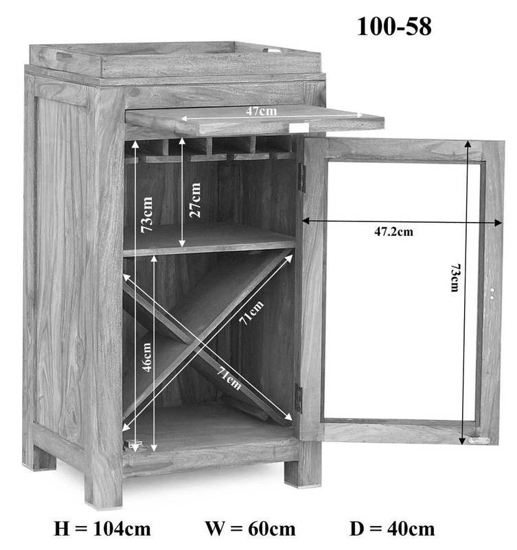 Con questo scaffale per vino della collezione NATURE GREY, gli amanti del vino potranno esporre i loro vini pregiati nella propria casa in modo pratico e piacevole. Bottiglie e bicchieri vengono messi in scena in modo decorativo, lasciando spazio anche alla praticità. Questo pezzo d’arredamento può rappresentare una particolare attrattiva nella vostra cucina, in sala da pranzo o in soggiorno ed offre, accanto alla facilità d’uso, anche durevolezza ed una bellezza naturale. Lo spazio disponibile in questo sobrio scaffale per vino è del tutto particolare. In poco spazio troverete tutto ciò di cui avete bisogno per la degustazione dei vini. Bottiglie e bicchieri trovano spazio, lontani dalla polvere, dietro una portella a vetro. Il mobile dispone anche di un piccolo ripiano estraibile che può essere usato come piano d’appoggio. In questo modo, il piano del mobile può essere utilizzato per disporvi altri bicchieri o soprammobili oppure essere impiegato come vassoio. Grazie all’ottimo e intelligente design e alla perfetta lavorazione artigianale, ogni bicchiere di vino diventa qui un grande piacere. Il materiale di costruzione utilizzato, il palissandro, da molto tempo è un legno pregiato altamente apprezzato che viene usato volentieri per la realizzazione di mobili. Il colore naturale del legno viene lasciato quasi inalterato in questa collezione e trattato soltanto con dell’olio. In questo modo, la bella struttura e la venatura del legno Sheesham vengono particolarmente valorizzate. Lo scaffale per vino si adatterà bene anche al vostro arredamento preesistente, sia esso in stile moderno o rurale.