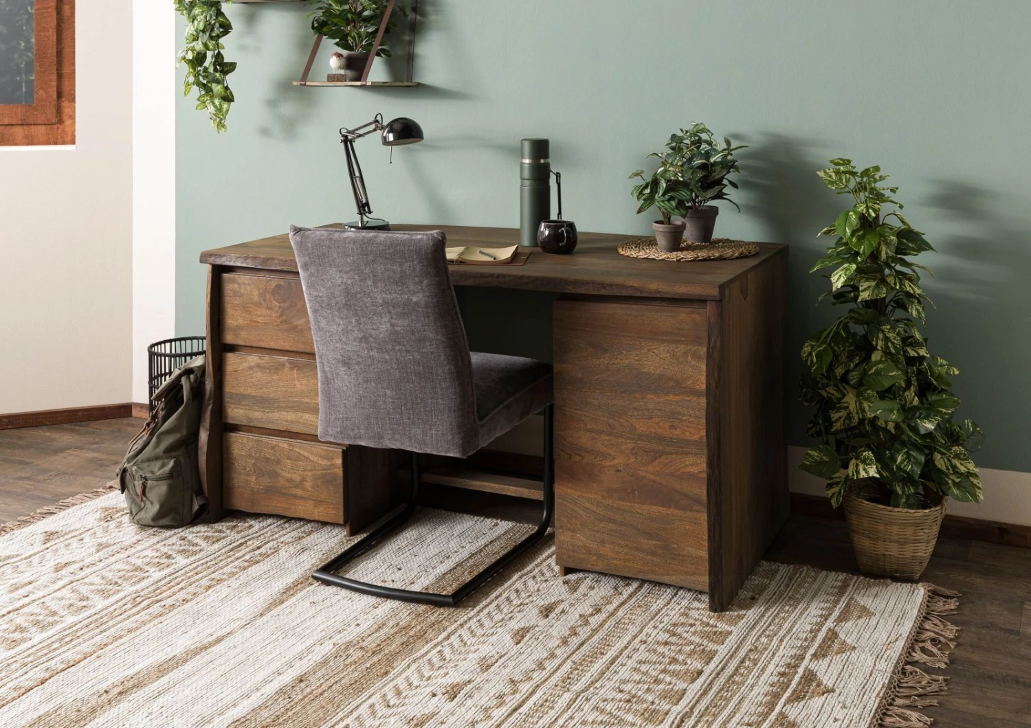 - Elegante scrivania in legno di mango con ampio spazio utile