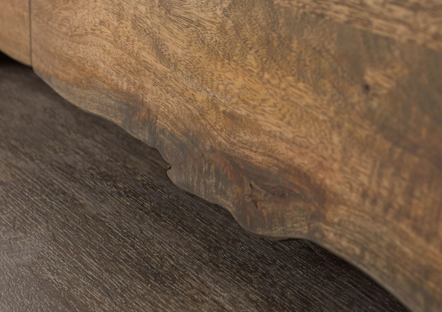 Il profilo ricorda il tronco di un albero. La forma del mobile racconta la storia della pianta, mettendone in luce il naturale fascino e rendendo ogni singolo pezzo d’arredo un esemplare davvero unico.