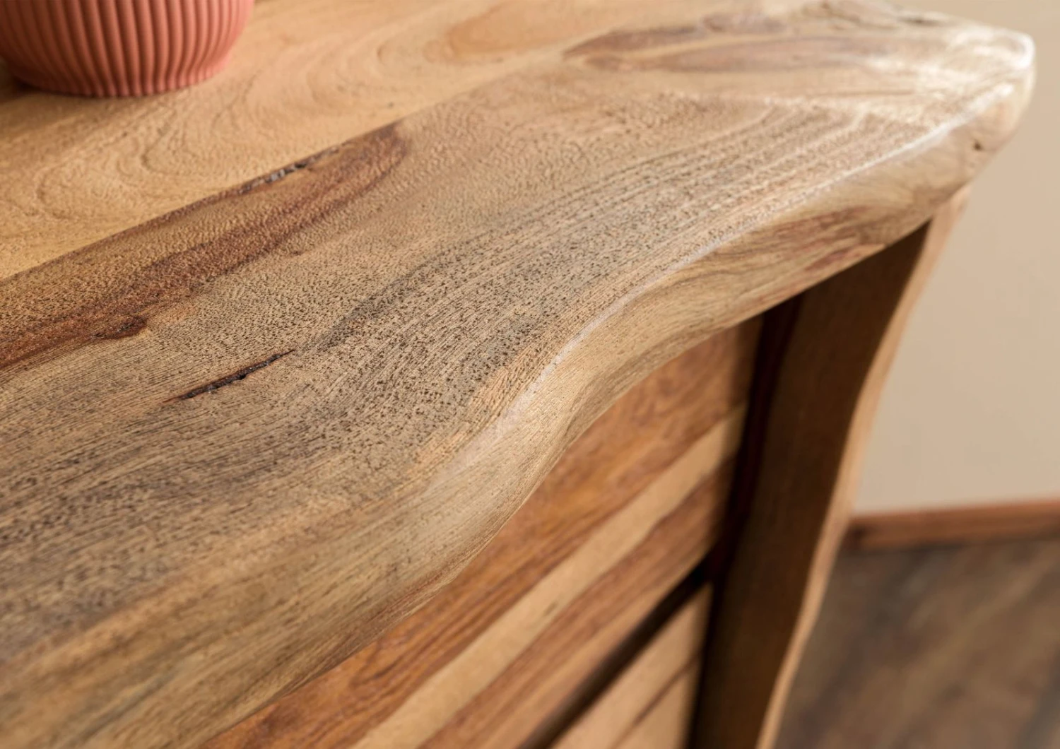 Credenza con bordo a tronco d’albero: design moderno con un tocco rustico