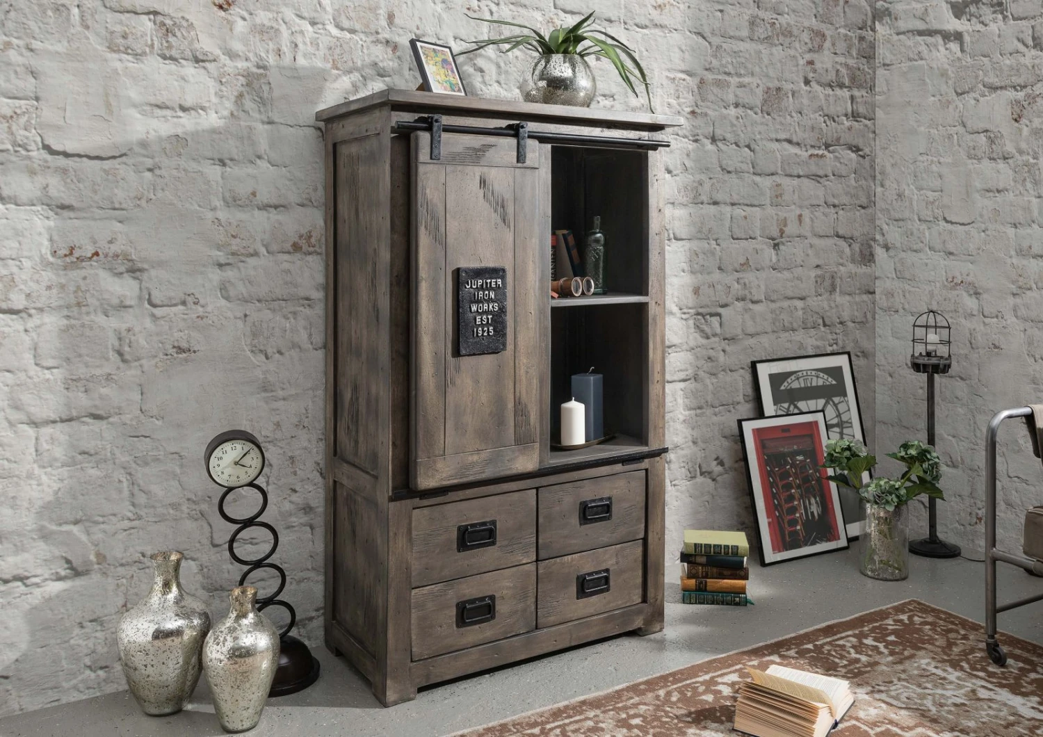 del prodotto RAILWAY #213 Armadio in legno di mango – laccato / grigio 90x45x150
