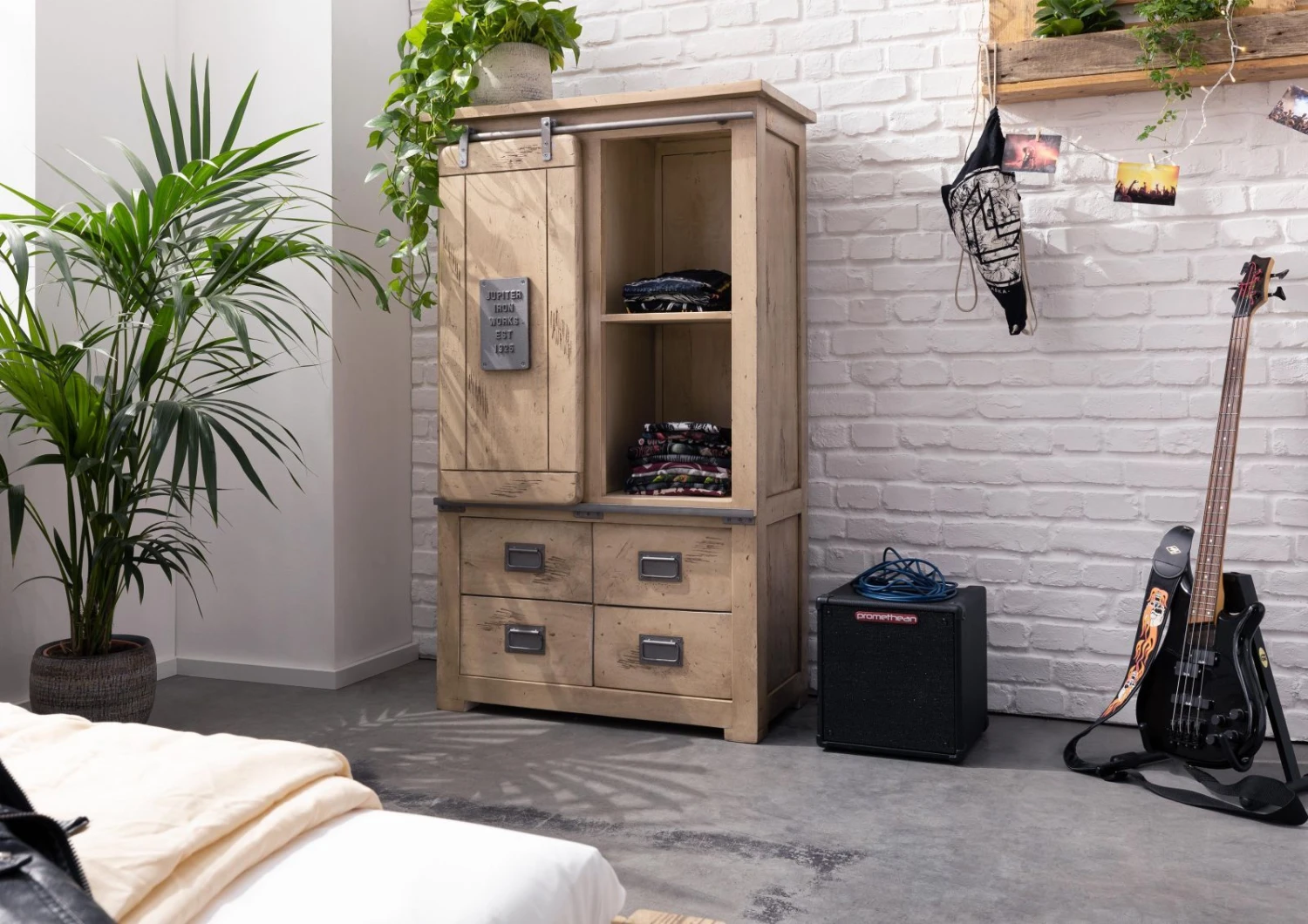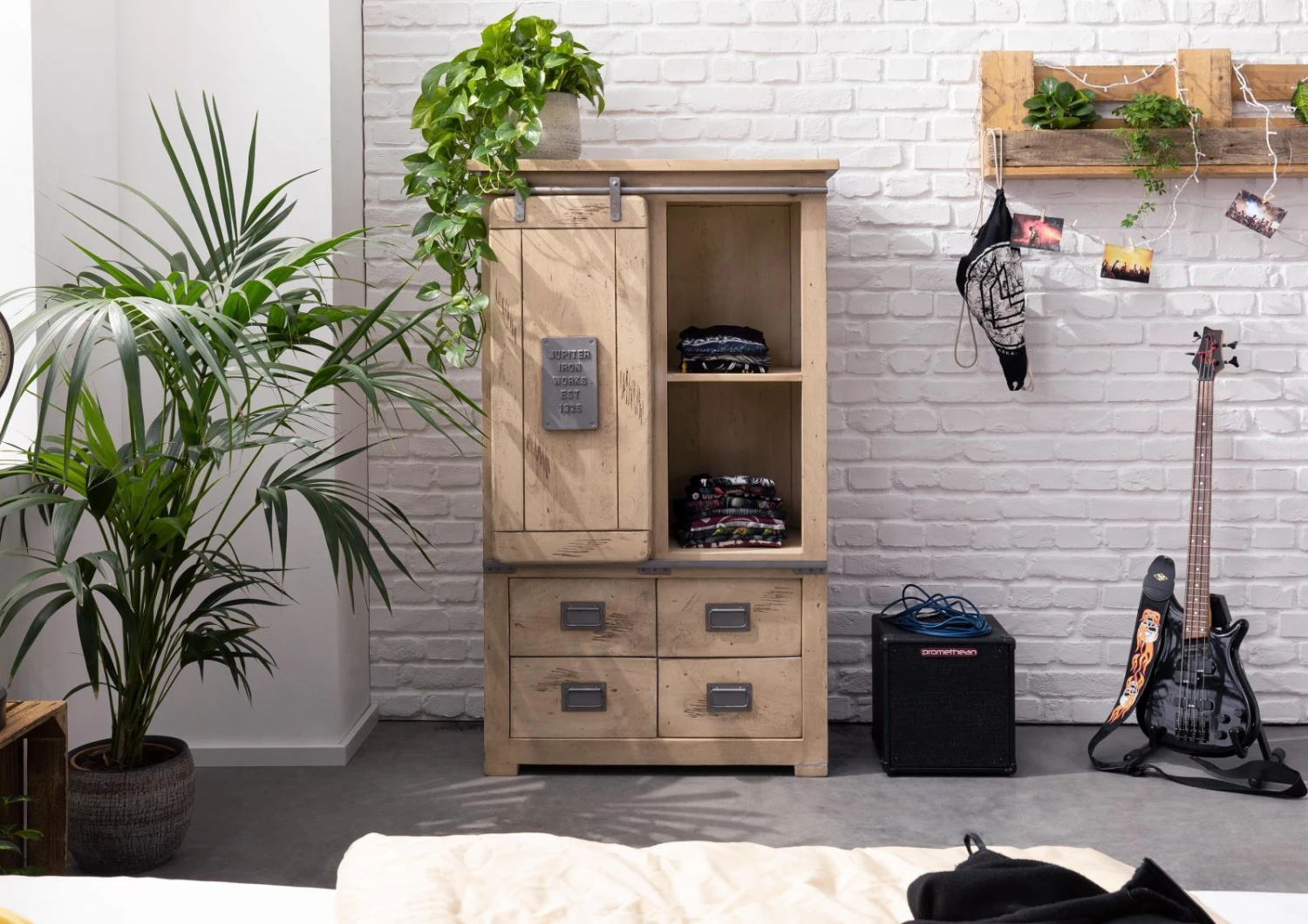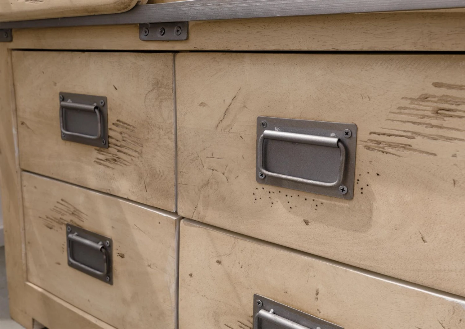 Come questo mobile della collezione RAILWAY dimostra, il design non conosce confini. Perché non è necessario limitarsi a un solo stile. Il vero legno laccato e i dettagli in ferro metallizzato grigio chiaro hanno un sapore industriale e vintage. Insieme danno vita un mobile ugualmente perfetto in sala da pranzo, in camera da letto o in soggiorno.