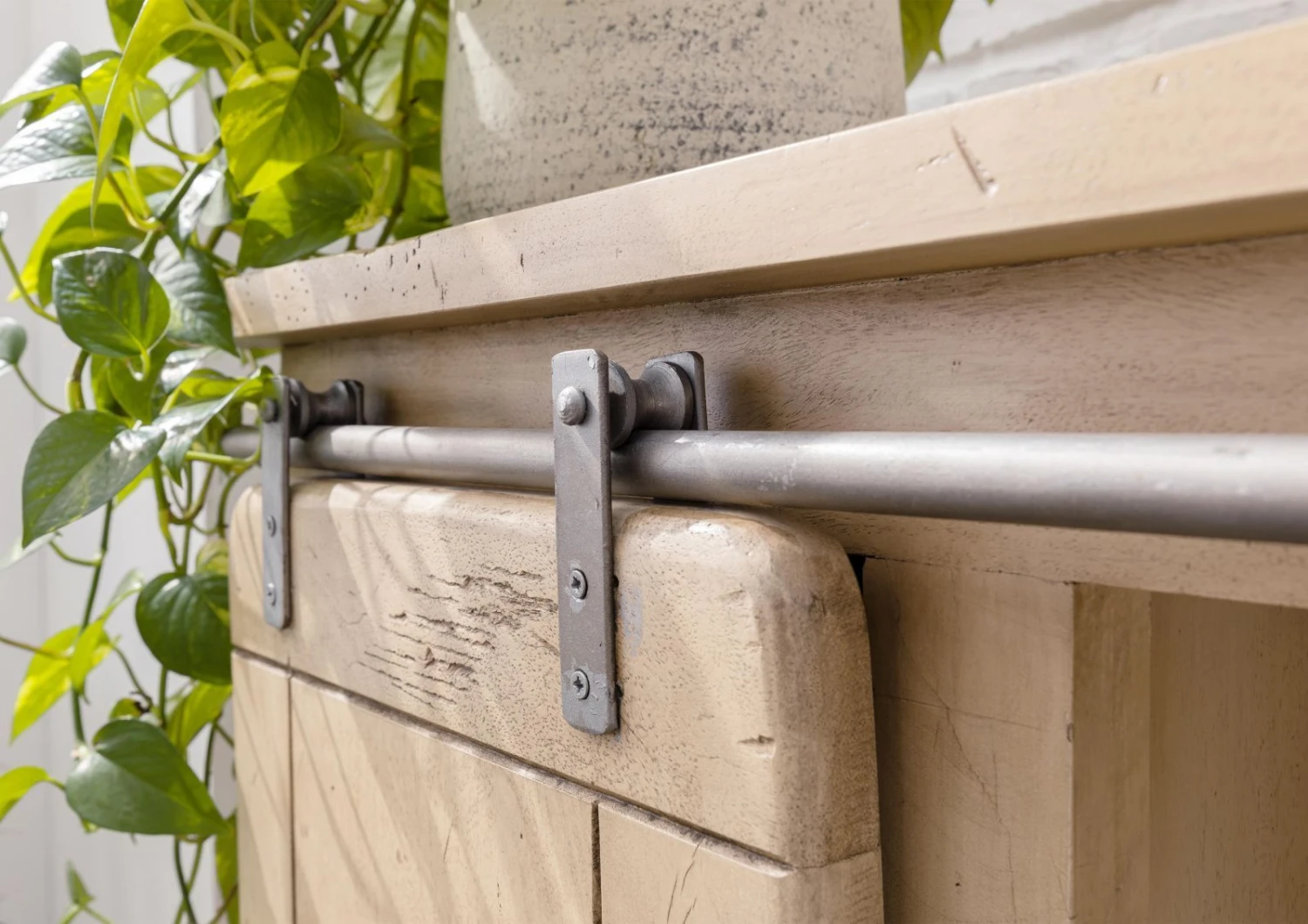 - Dettagli di design speciali: l’anta scorrevole su binario in ferro e rustiche applicazioni in metallo