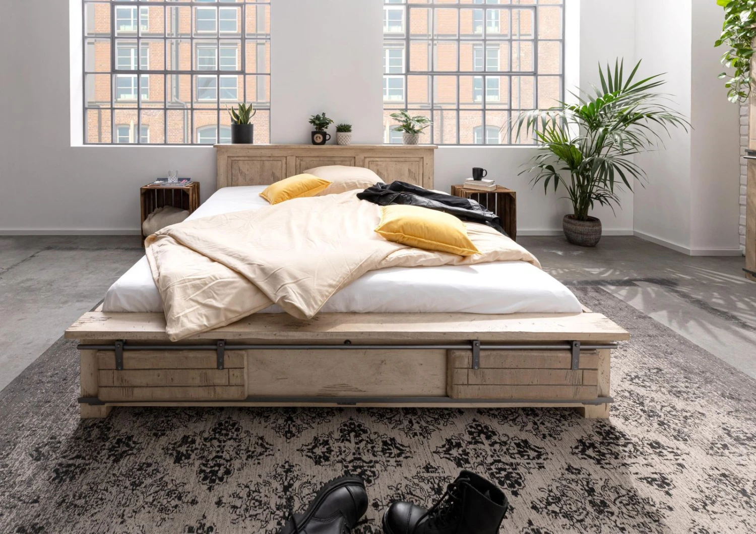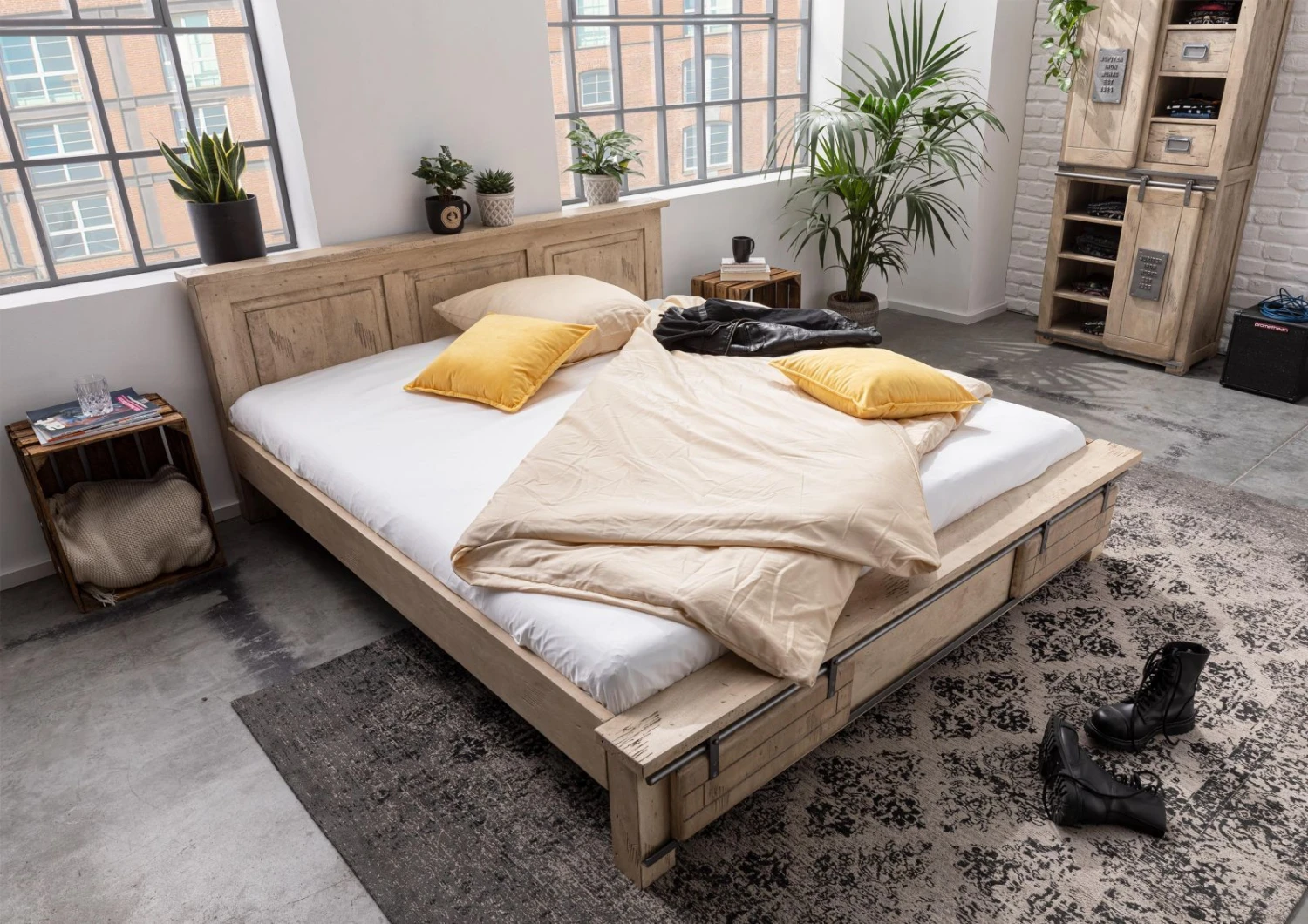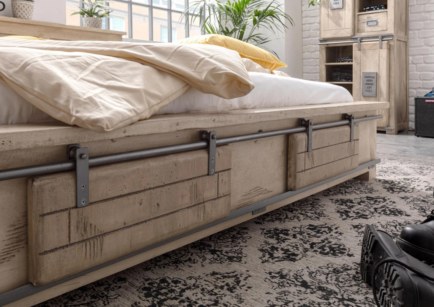 del prodotto RAILWAY #342 Letto matrimoniale in legno di mango – laccato / whitewash 180×200