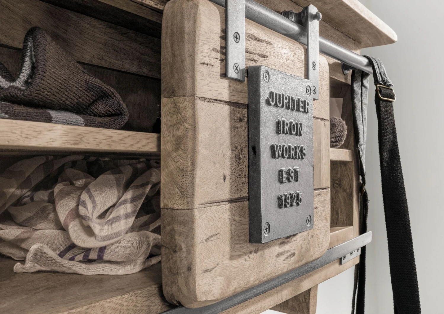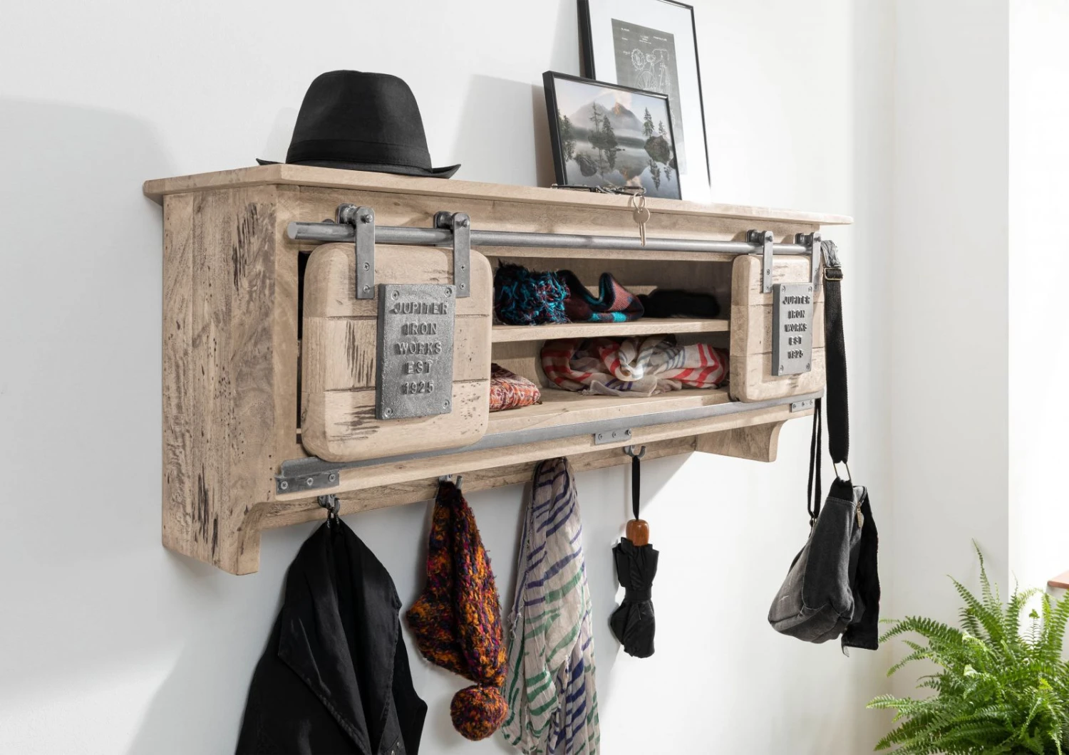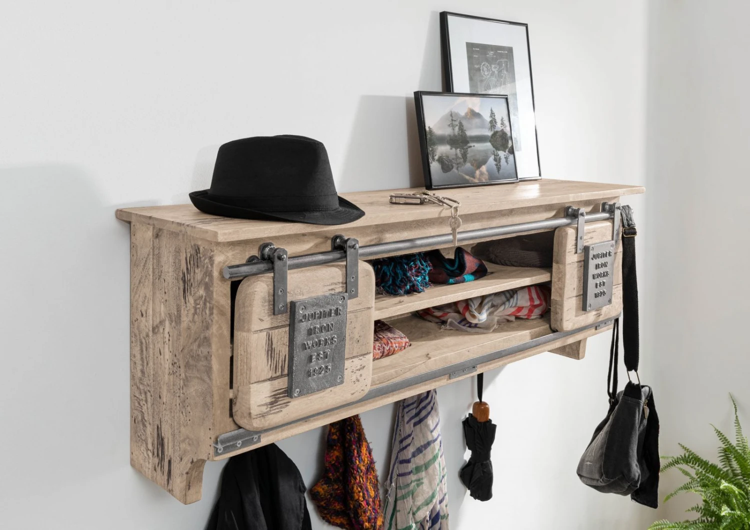 Appendiabiti da parete in stile industriale: il legno di mango usato incontra il metallo