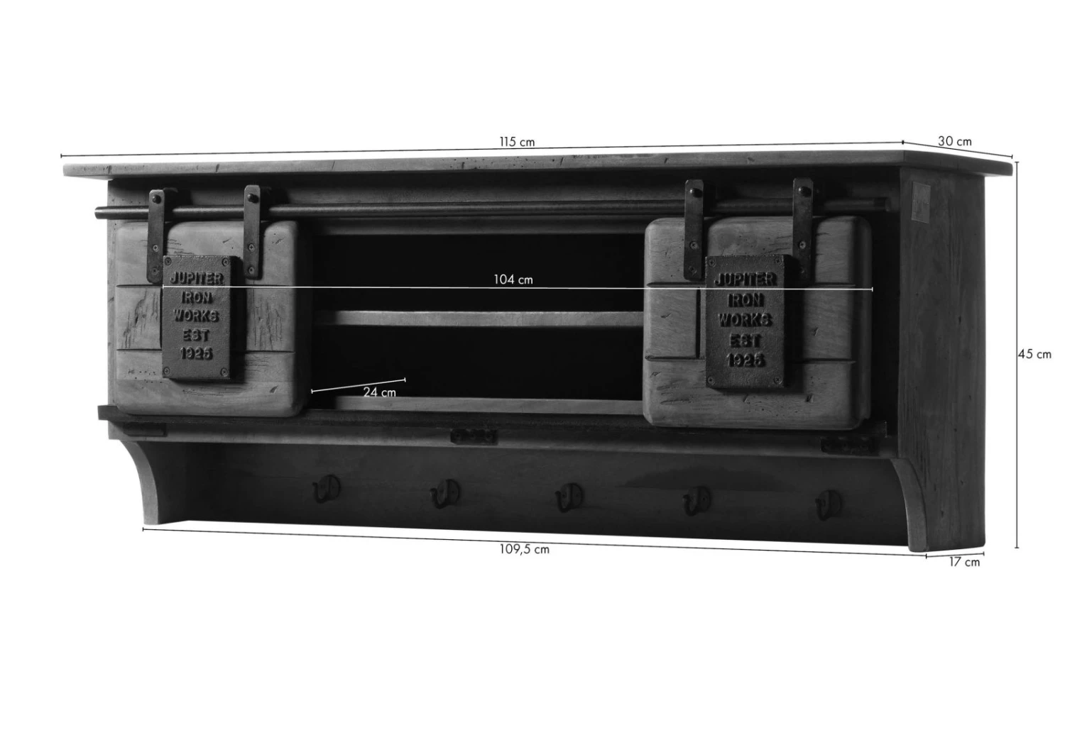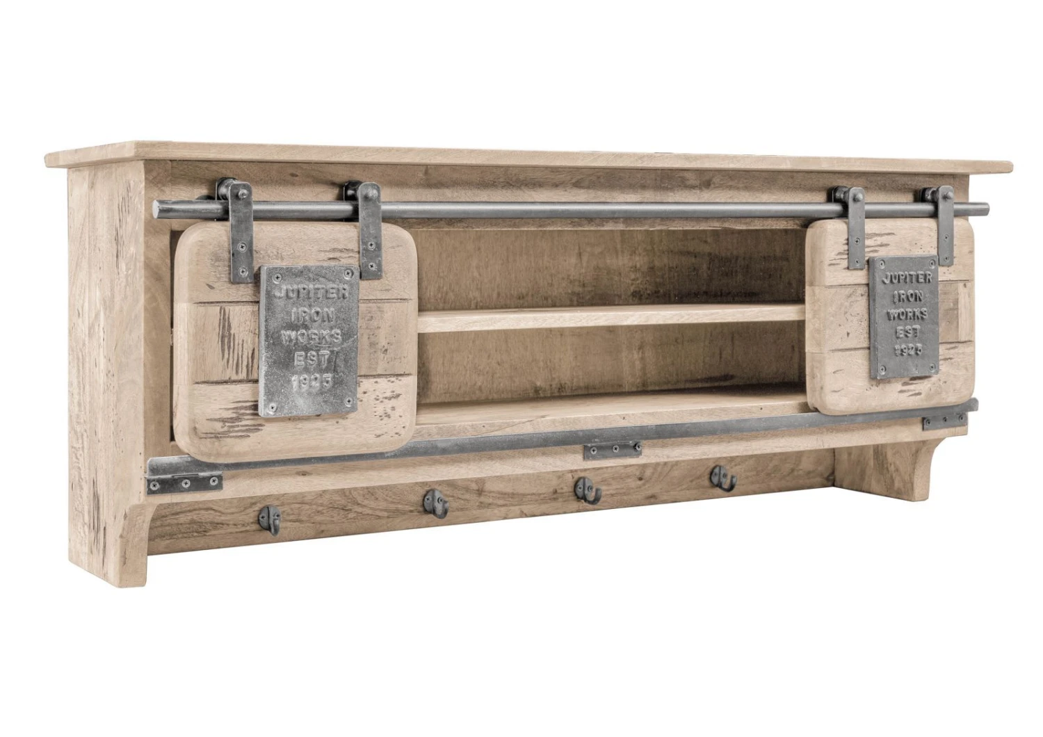- Suggestivo appendiabiti da parete in stile industriale realizzato in legno di mango