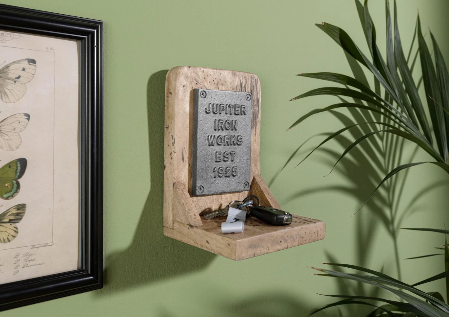Per valorizzare un ambiente non serve per forza qualcosa di grandi dimensioni: questa mensola da parete è perfetta per chi vuole provare lo stile industriale. La lavorazione di alta qualità del legno di mango conferisce alla struttura del materiale naturale una finitura dall’aspetto usato, mentre la piastra in ferro grigio chiaro con elegante stampatura completa l’effetto.
