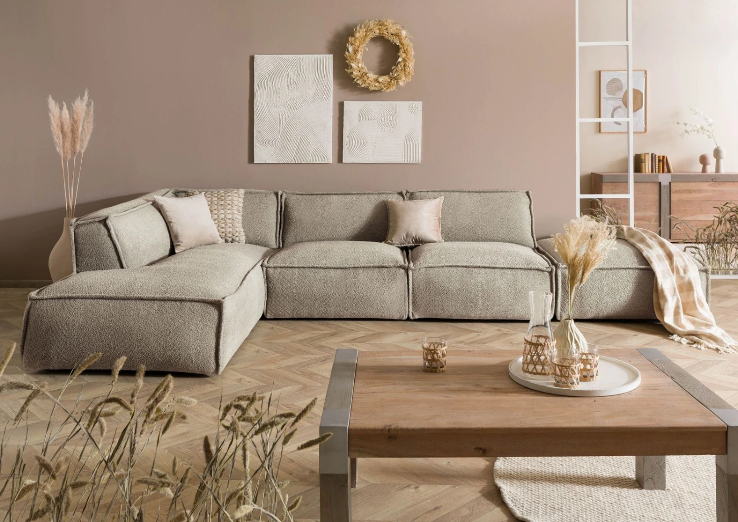 Grazie alla sua classica forma a L, il divano in bouclé s’inserisce facilmente negli angoli, ma fa anche bella figura come oasi centrale in salotti grandi. Il comfort e la praticità sono ulteriormente potenziati dalla seduta abbinata, che può essere posizionata e spostata a piacere. Abbinandolo armoniosamente con mobili di legno massiccio in calde tonalità naturali o creando contrasti di stile con elementi freddi in vetro e metallo, questo divano angolare è un capolavoro di comodità.